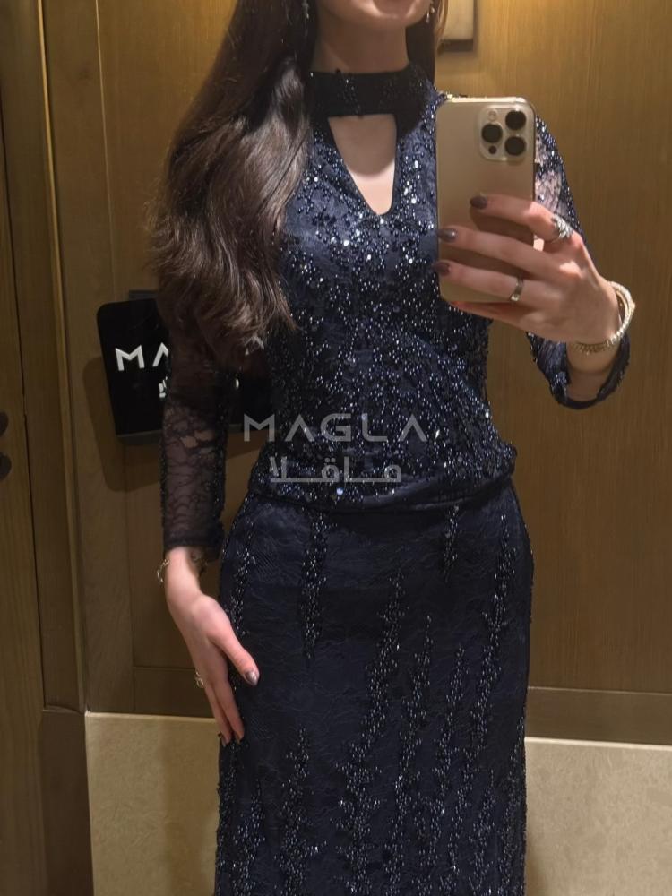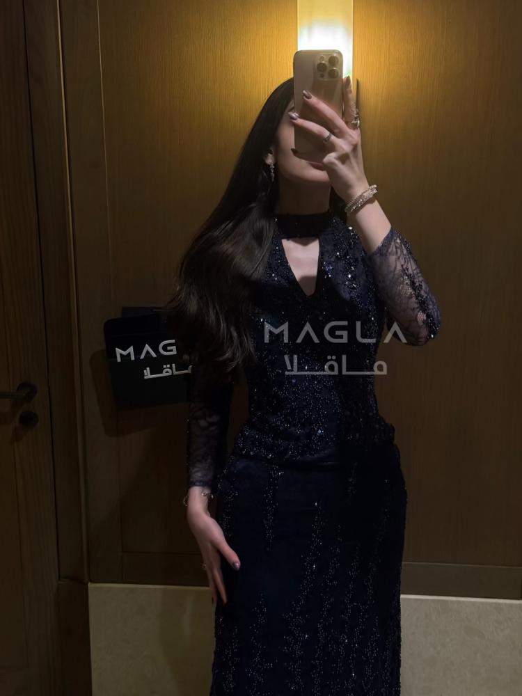 يأتي بلون كحلي وقصة سكيني تبرز أنوثة القوام بكل أناقة.