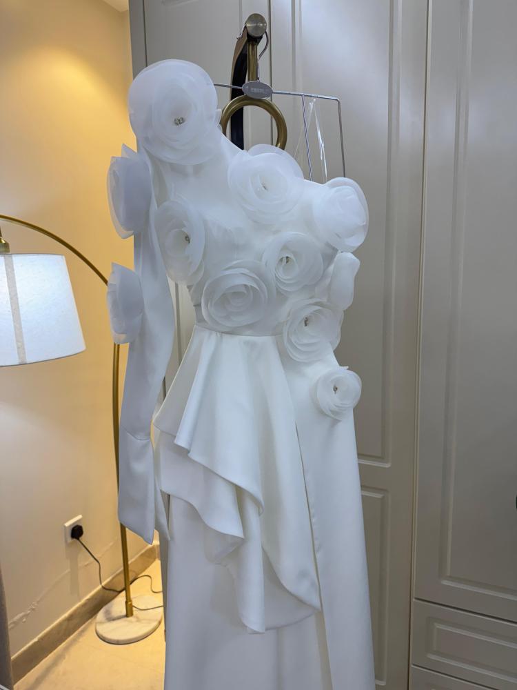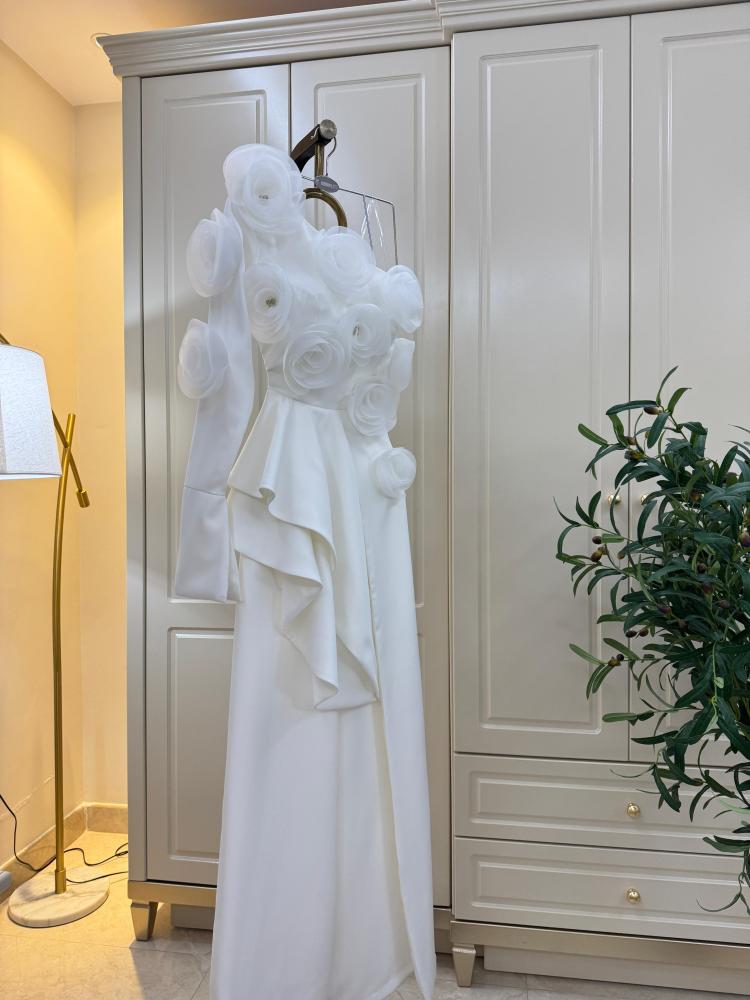 نوع القماش : اوف وايت بتطريز فصوص سواروفسكي شك