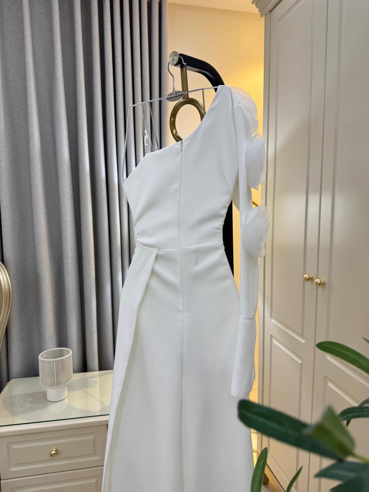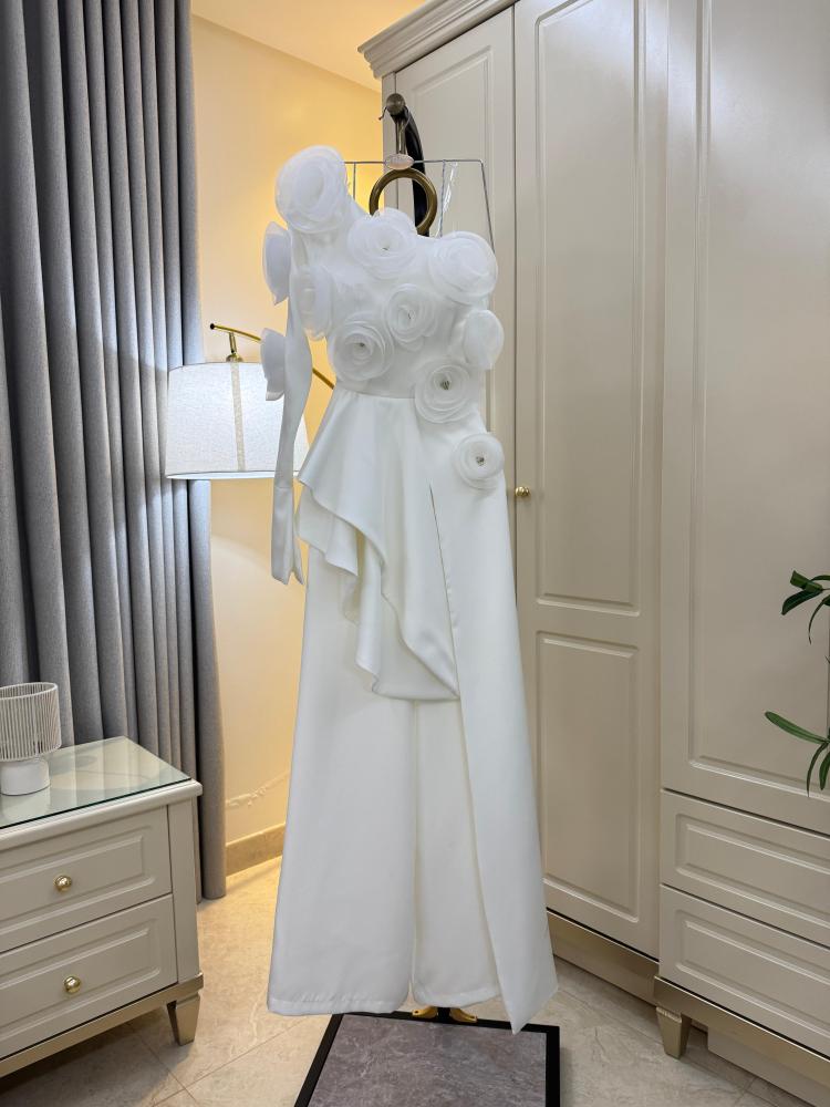 تألقي بأسلوب راقٍ مع جمبسوت "مزون" الفاخر، المصمم من قطعة واحدة ليجمع بين الأناقة والراحة. مصنوع من قماش أوف وايت الفاخر ومزين بتطريز فصوص سواروفسكي اللامعة بالشّك اليدوي، ليمنحك لمسة من الفخامة والجاذبية. بطول 157 سم، يعد الخيار الأمثل للمناسبات المميزة.