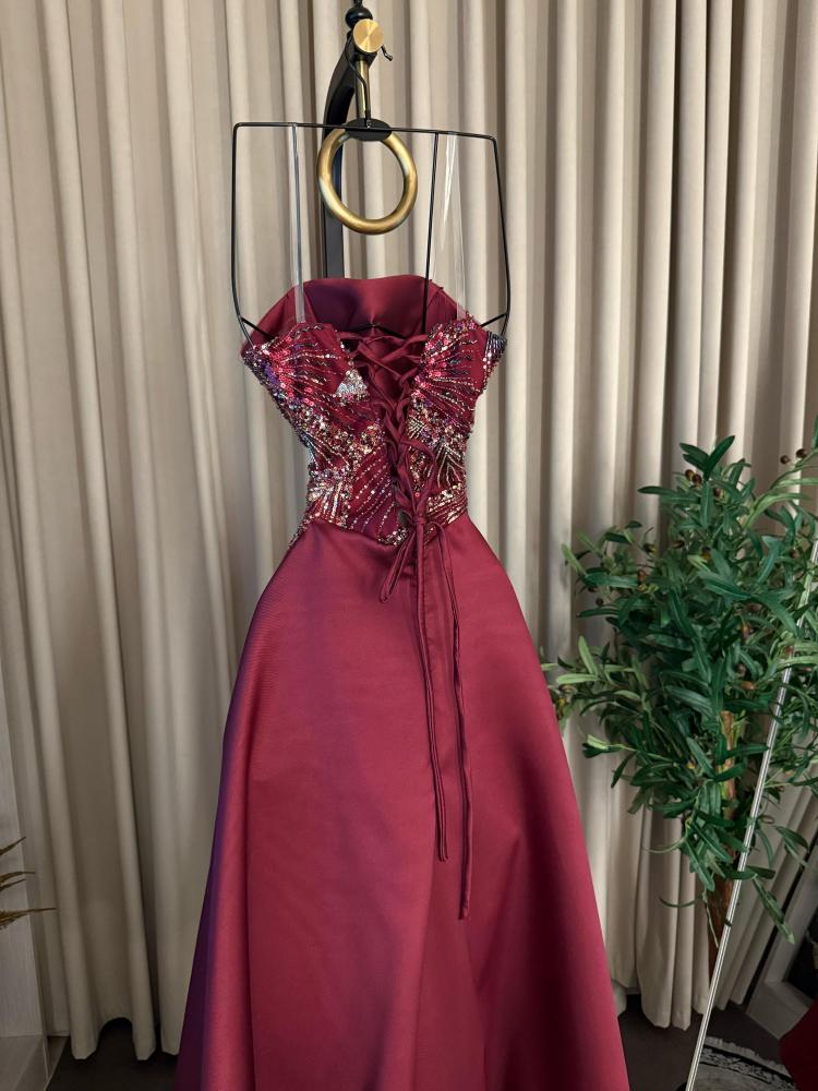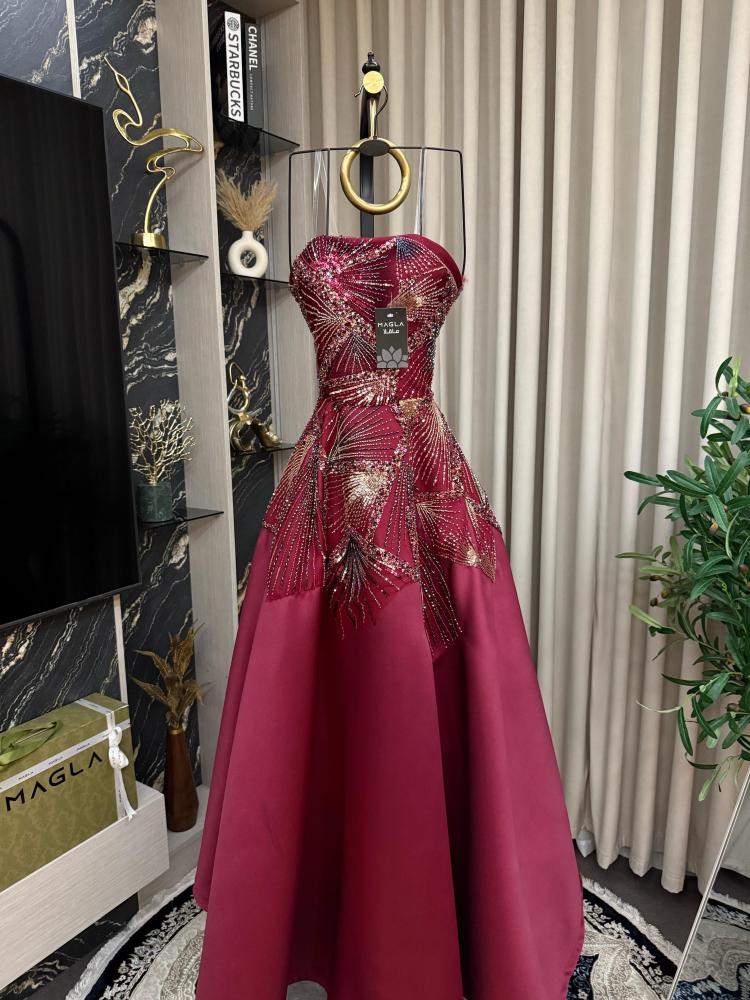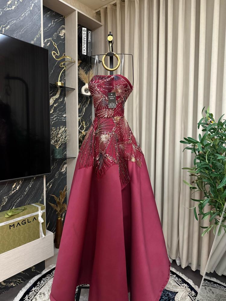 فستان يُجسّد الرقي في أبهى صوره، مصنوع من قماش الميكادو الفاخر الذي ينساب بثبات وأناقة، ويزدان بـ تطريز خرز دقيق يضفي عليه لمسة من الفخامة اللامحدودة.