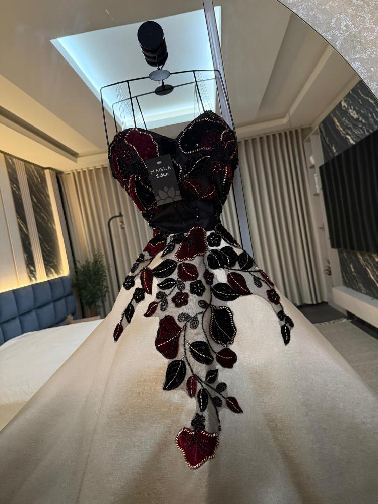 مزدان بتطريز خرز فاخر يضفي لمسة لامعة على كل حركة، بطول 125 سم يلامس الأناقة الراقية بأسلوب عصري.
