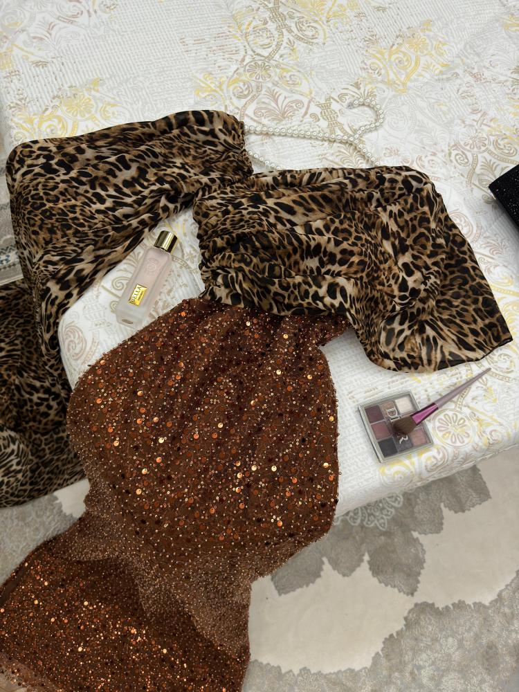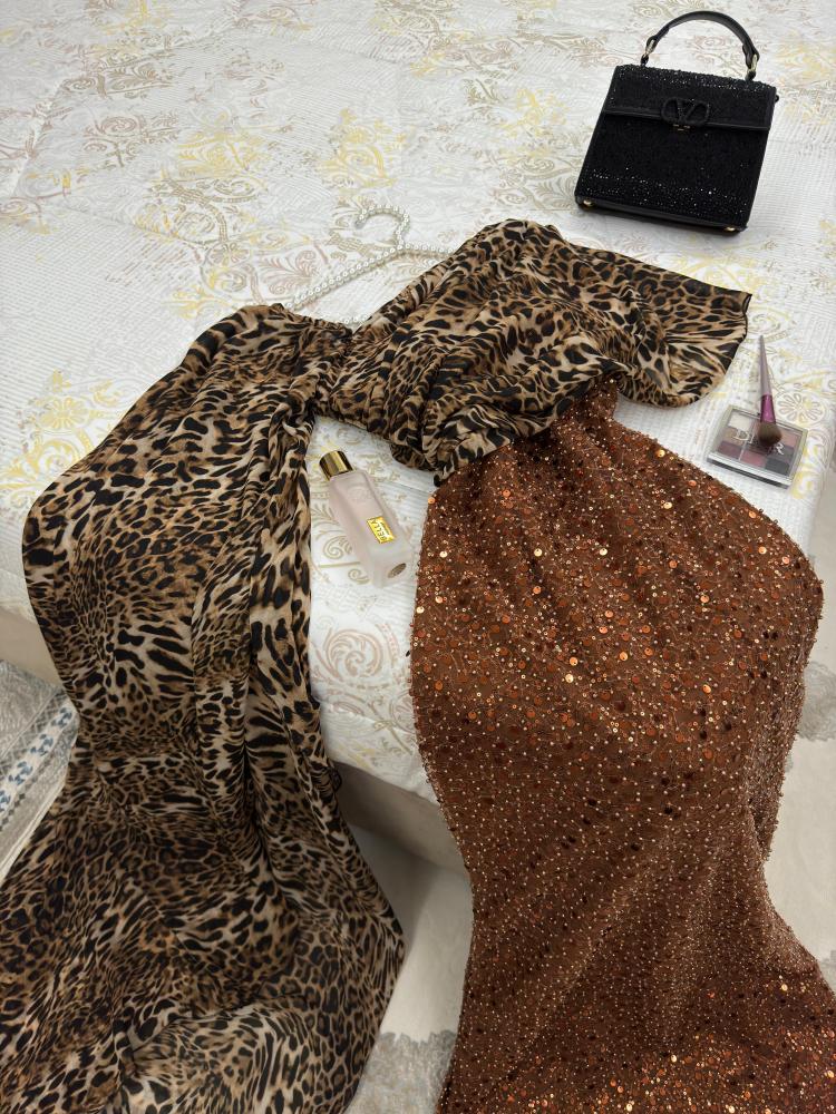 استعدي للإطلالة المميزة والأنيقة في الفلات والحفلات والمناسبات الخاصة مع فستان ترتر ماسك بتدخيلة شيفون نمري. يأتي هذا الفستان بلون نمري راقي وجذاب. مصنوع من قماش شيفون نمري مع ترتر عالي الجودة لضمان الراحة والأناقة. يتوفر بمقاسات متعددة ليناسب جميع الأشكال والأحجام. الفستان مزود بشال كتف متصل طويل لإضافة لمسة فريدة على الإطلالة. يمكنك تنسيقه مع إكسسواراتك المفضلة لإكمال الأناقة. مناسب للفلات والحفلات والزفاف. اشعري بالثقة والجاذبية مع هذا الفستان الراقي.