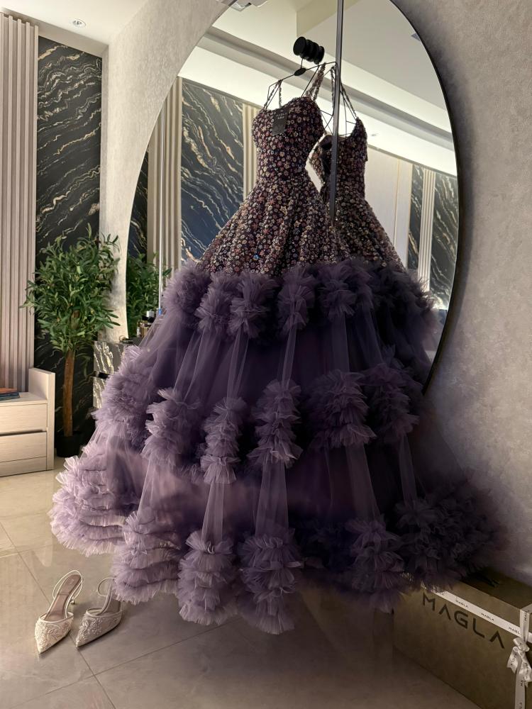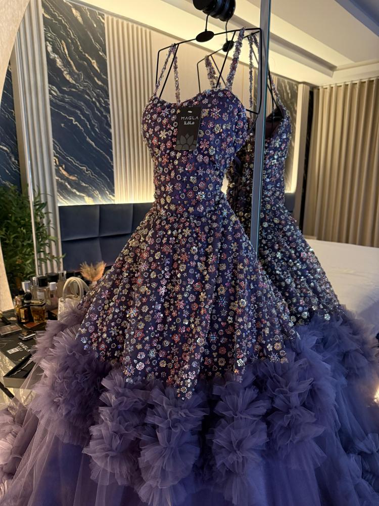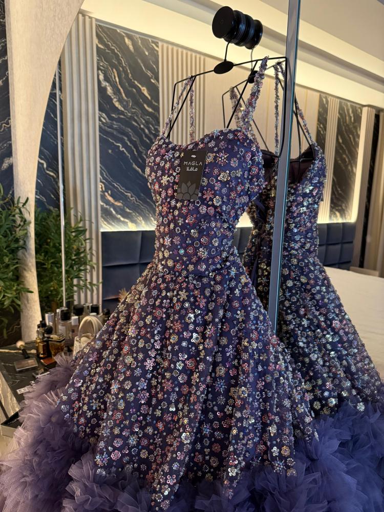 القماش : تل سهره بتطريز خرز مع ترتر وتحت تل إيطالي ناعم دبل كلوش طبقات مع بطانه تفته أمريكي