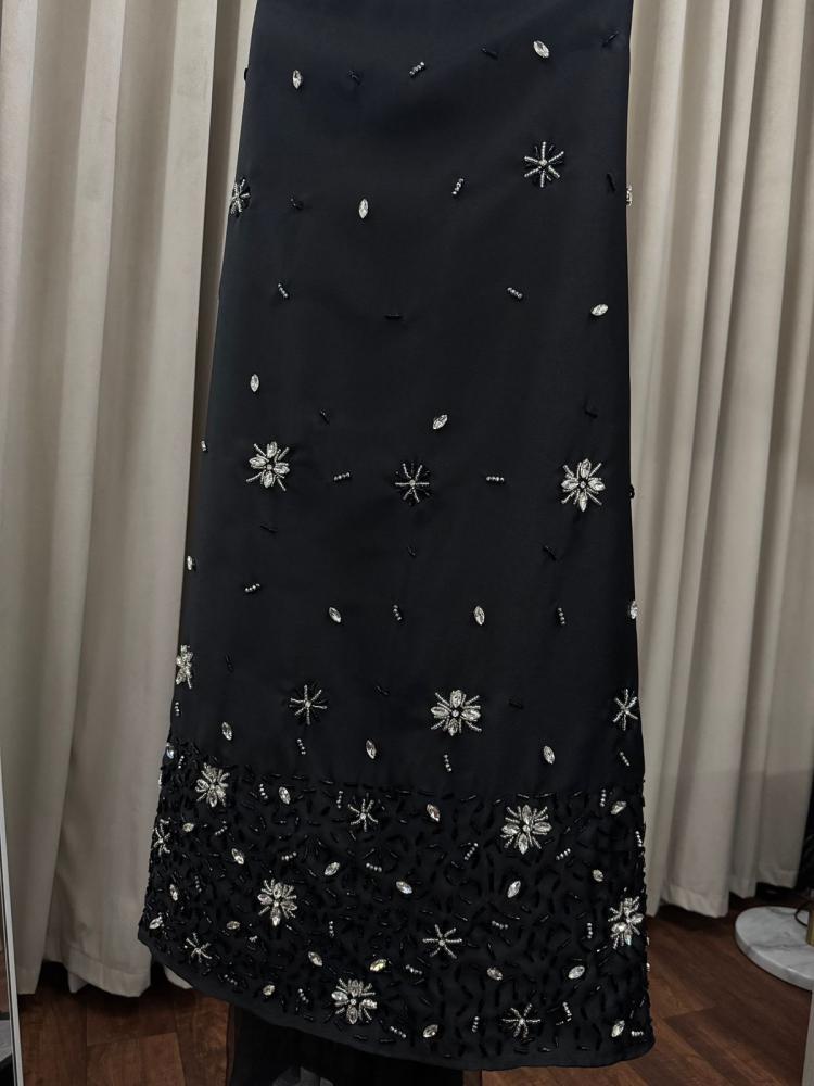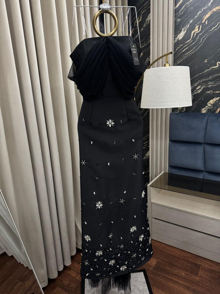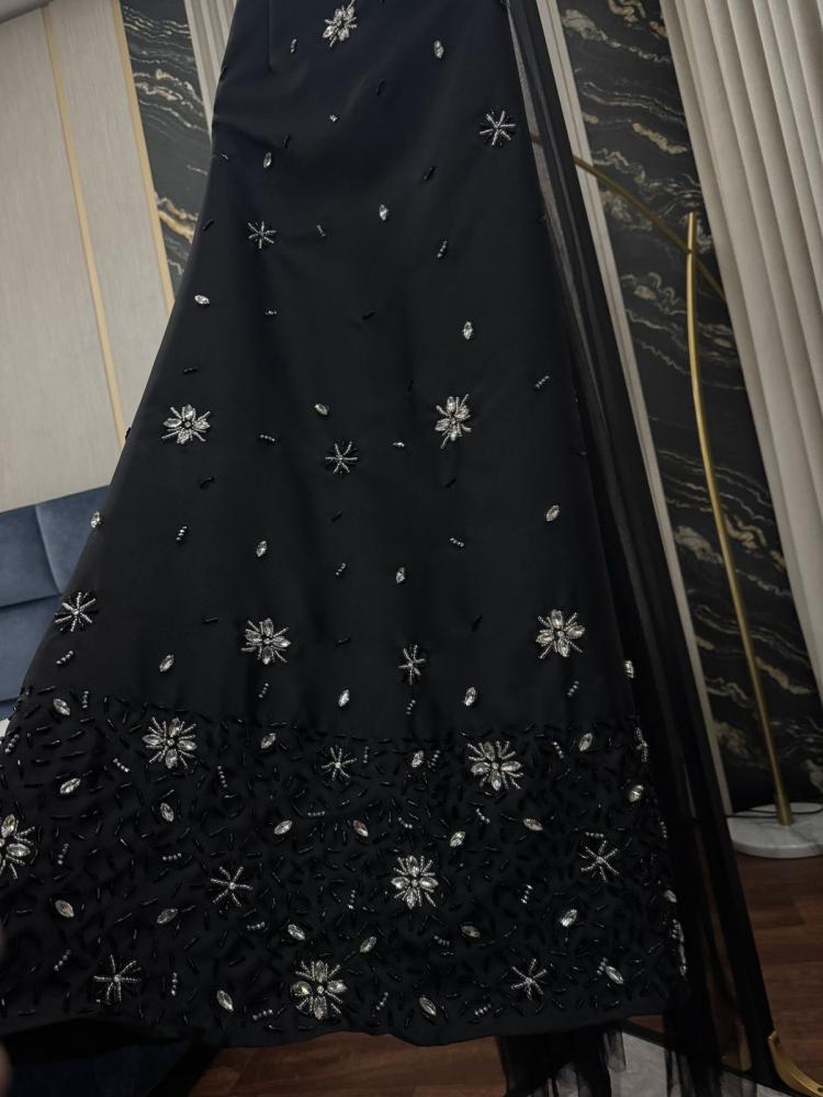 اطلبي الآن فستان حنين الجميل لتتألقي في مناسباتك الخاصة. يتميز هذا الفستان بتصميمه الأنيق والمبهر الذي يضفي لمسة من الفخامة والجمال على إطلالتك. تم صنع هذا الفستان من قماش الميكادو ذو التطريز الشك اليدوي الرائع، مما يضفي عليه لمسة فنية وفريدة. يأتي الفستان بلون أسود مشرق ومنعش، مما يجعله مثاليًا للأوقات الخاصة والمناسبات المميزة.