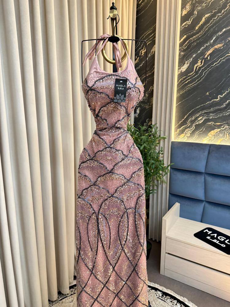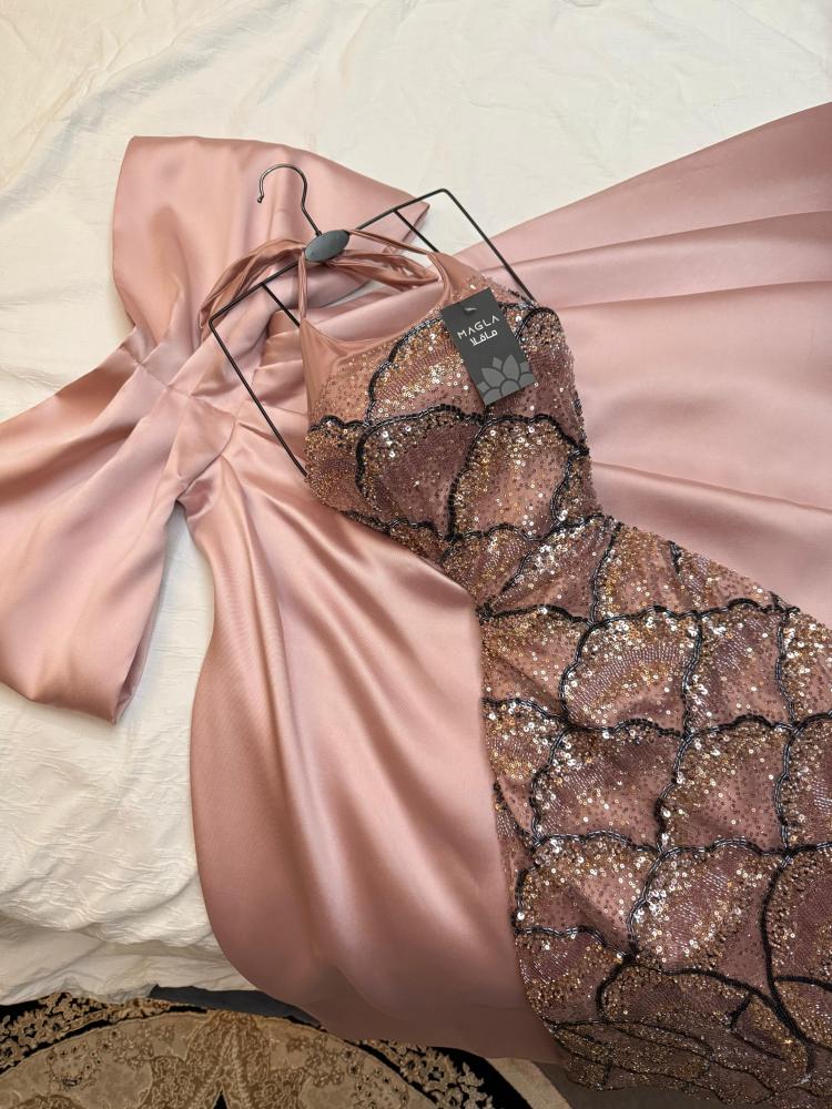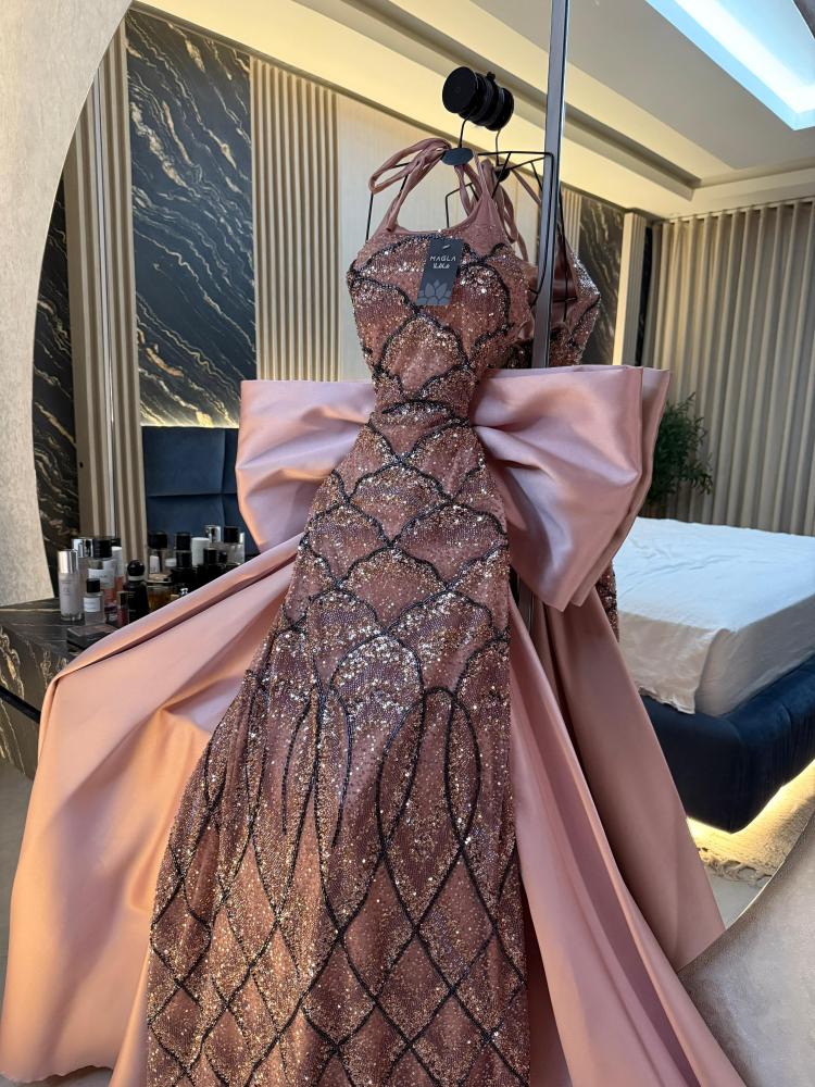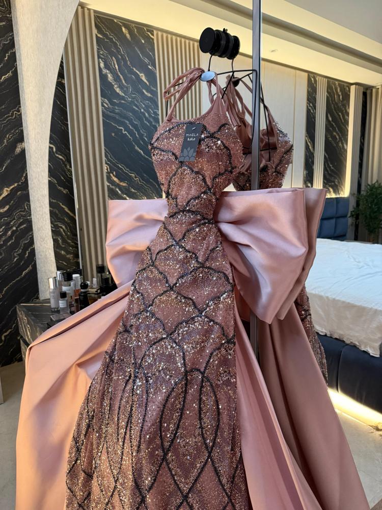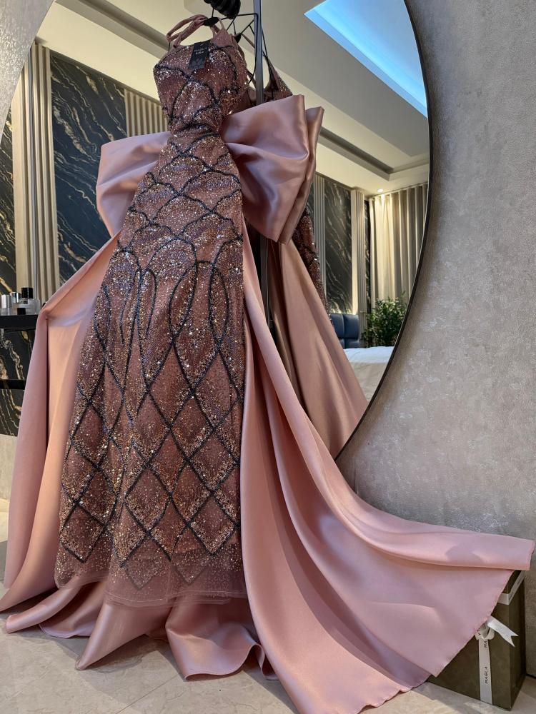 أناقة لا تُضاهى بتصميم يأسر الأنظار. مصنوع من تل سهره فاخر بتطريز خرز راقٍ ينبض بالفخامة، ويتميز بفيونكة أنثوية على الأكمام تضيف لمسة ساحرة. الذيل الطويل يزيد الإطلالة رُقياً وفخامة.