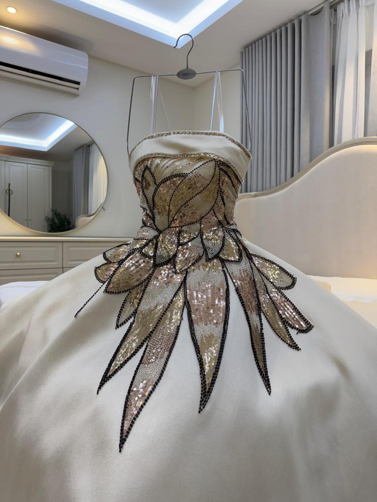 فستان "رندى" هو فستان جميل مصنوع من قماش الميكادو المزين بتطريز خرز شك، مما يعطيه مظهراً أنيقاً وفاخراً. يبلغ طول الفستان 160 سم ويأتي بمقاسات متنوعة تبدأ من S وتصل حتى XXL. يتوفر الفستان بسعر 465 ريال.