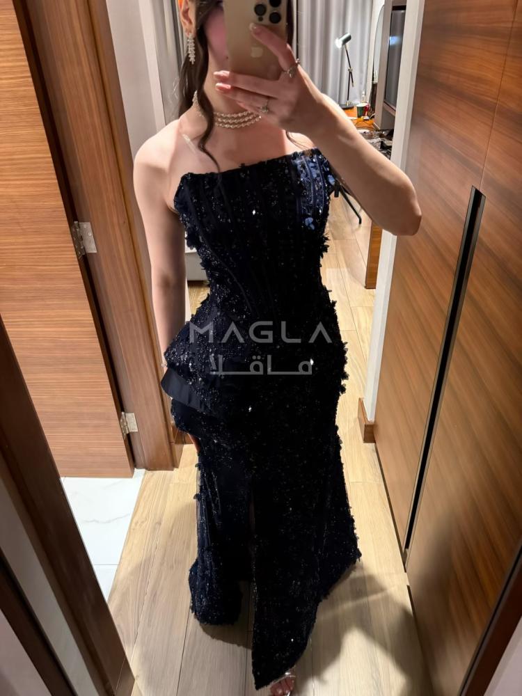 نوع القماش : تل سهره بتطريز ترتر مع ورود بارزه على بطانه تفته اصلي