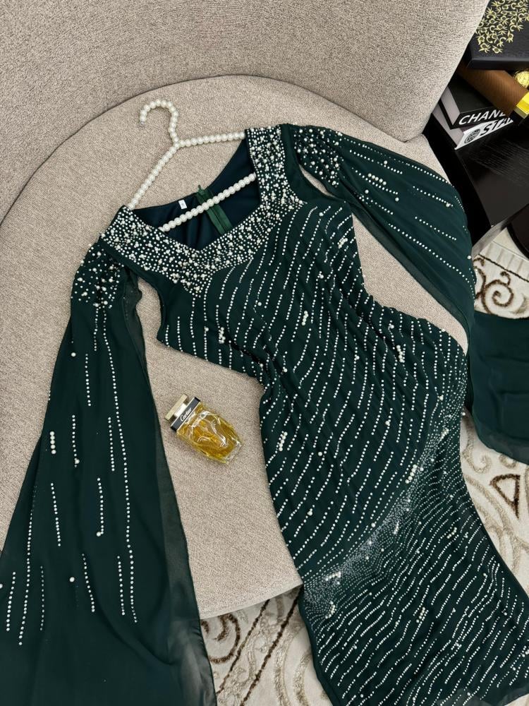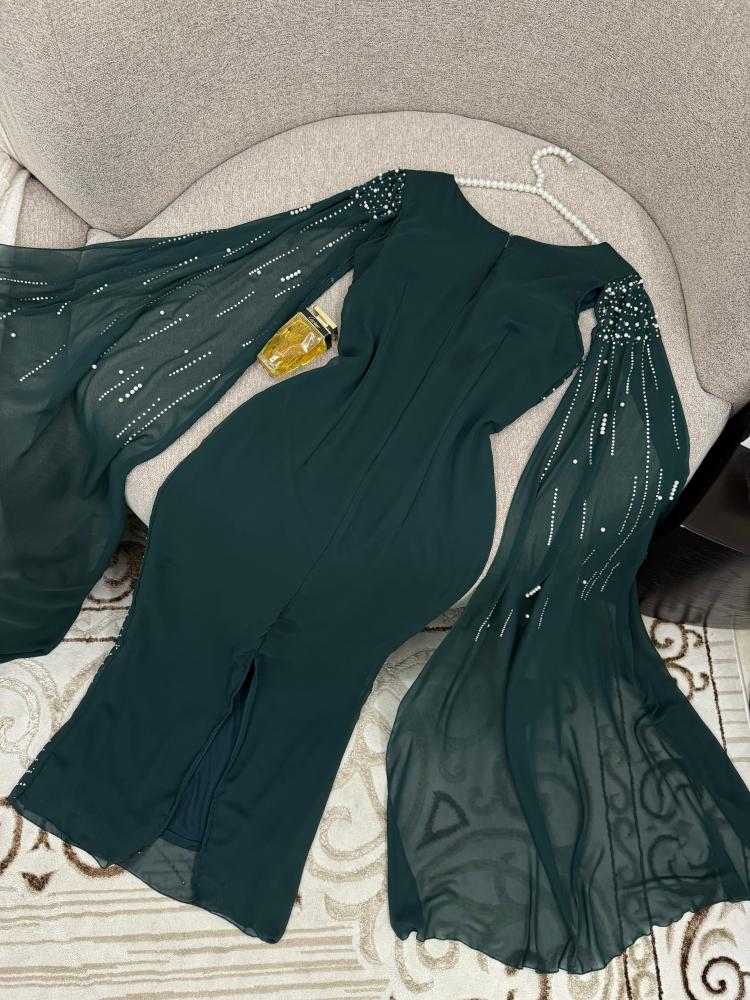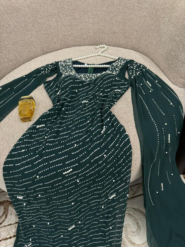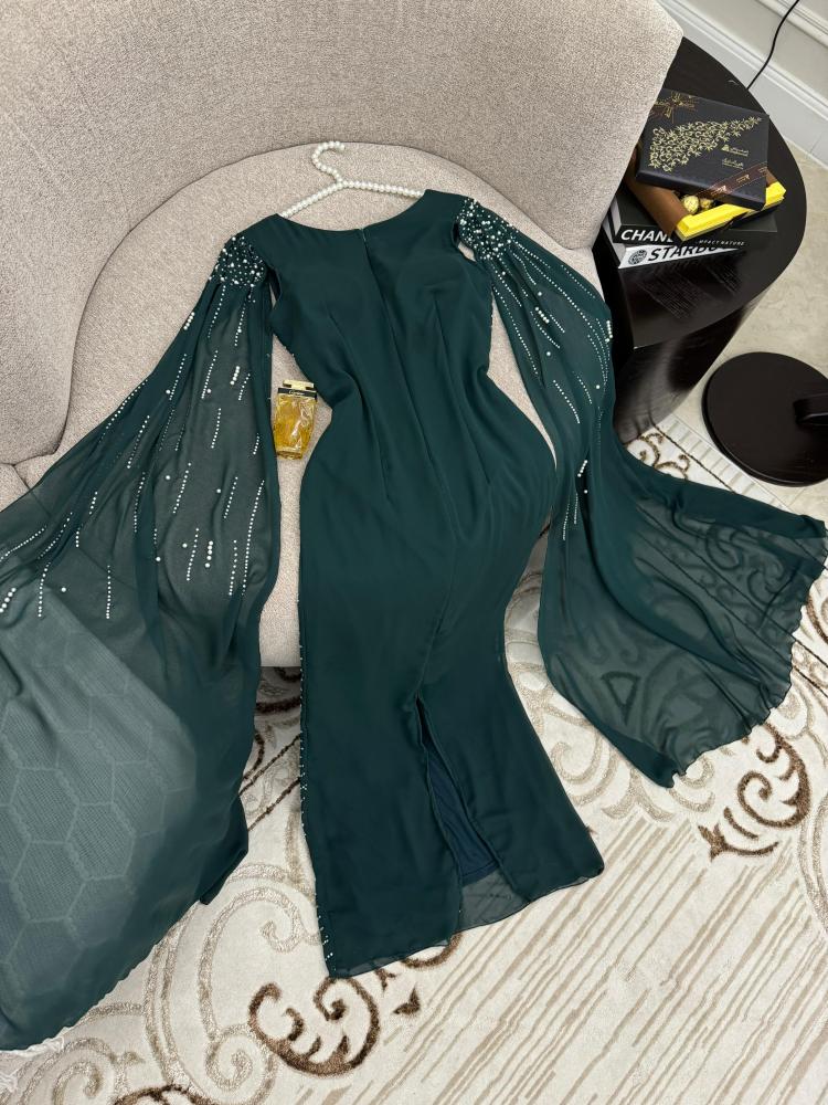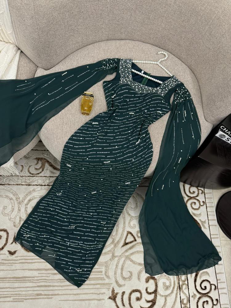 أطلبي الأن فستان زيتي ماسك بتطريز كامل