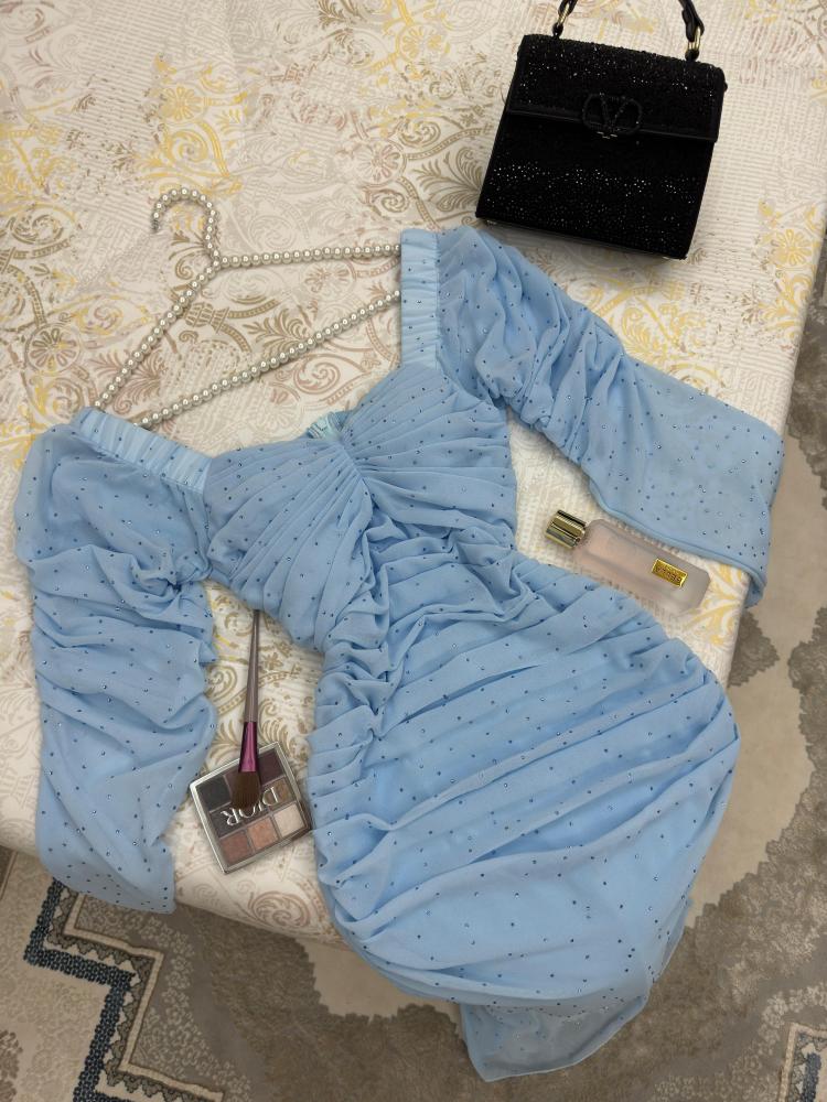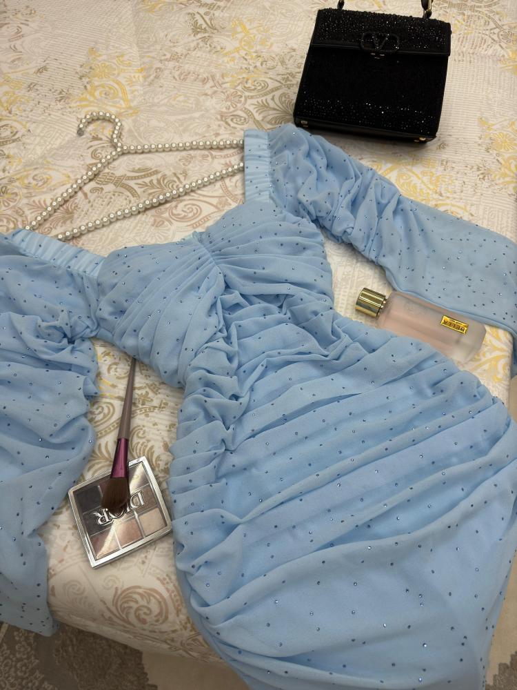 احصلي الآن على فستان سماوي شيفون كسرات بأكمام طويلة وقصة صدر مربعه مميزة. يتميز هذا الفستان بلونه السماوي الجذاب، مما يضفي لمسة من الأناقة والرقي على إطلالتك. يعتبر هذا الفستان مناسبًا للفلات والحفلات والطلعات والمناسبات العائليه ، حيث يمكنك أن تبهري الجميع بإطلالتك الساحرة.