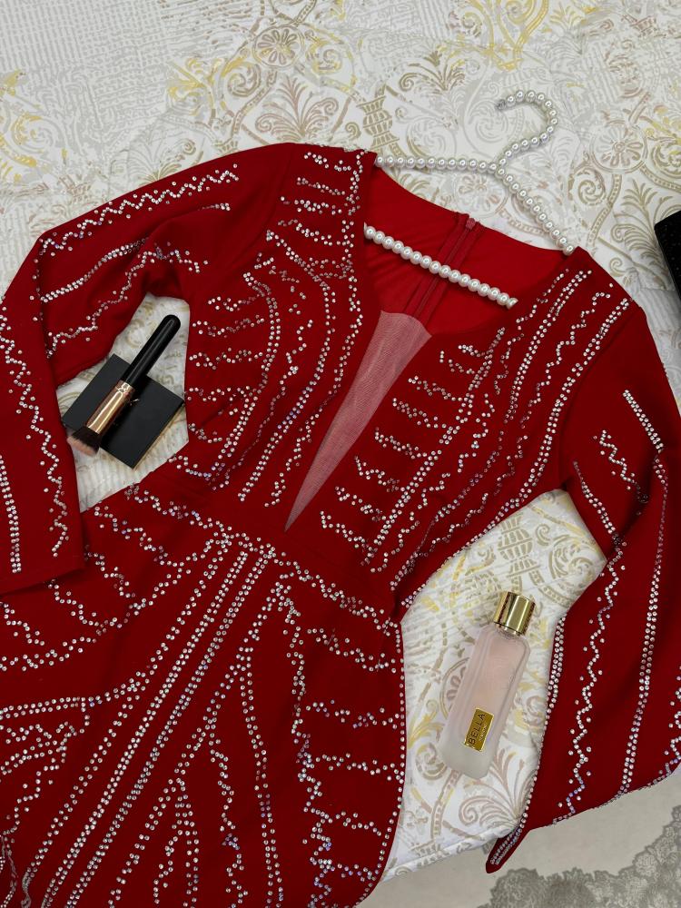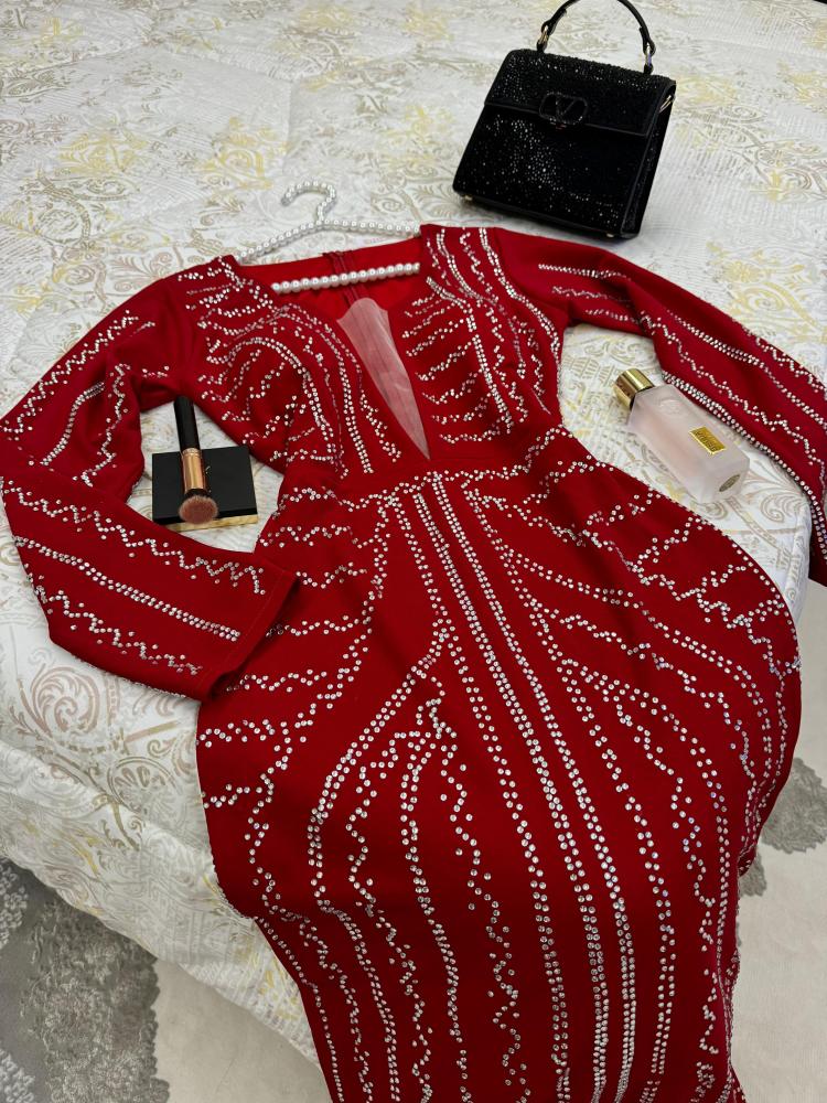 استعدي للإطلالة المذهلة والمميزة في المناسبات الخاصة مع فستان سهرة أحمر ماسك. يتميز هذا الفستان بتصميمه الفاخر والأنيق الذي يلفت الأنظار ويجعلك تتألقين بأناقة لا تقاوم. مصنوع من قماش الكريب المطرز، يضفي هذا الفستان لمسة من الرقي والأناقة على إطلالتك. يأتي هذا الفستان بقصة سمكة التي تبرز جمال القوام وتعزز أنوثتك. يتوفر بمقاسات متعددة لتناسب مختلف أحجام الجسم. يأتي بقصة صدر دائرية تضفي لمسة من الجمال والأناقة على الفستان.
