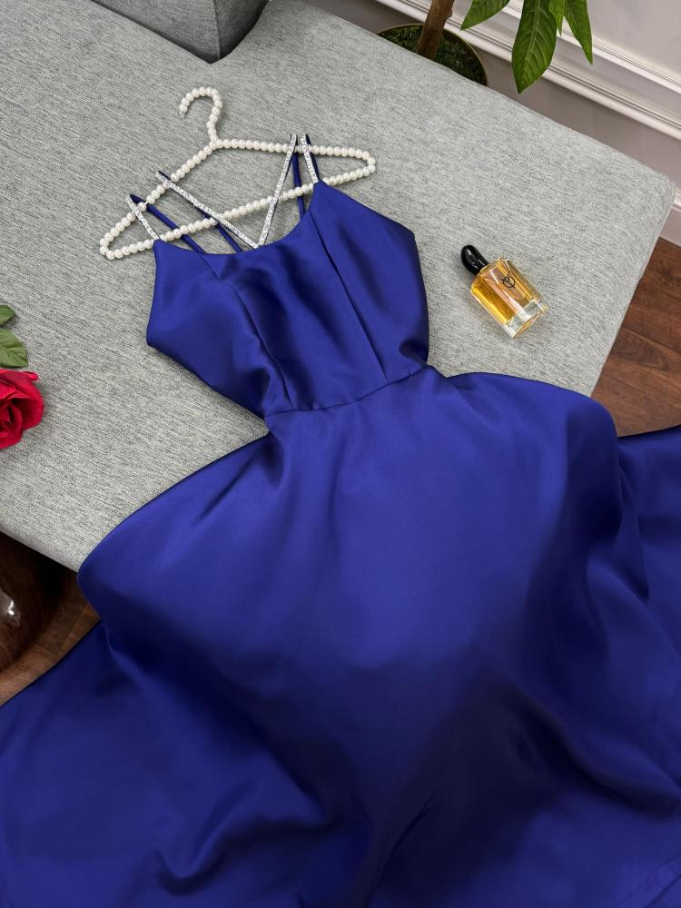 فستان سهرة كحلي بذيل طويل مثالي للسهرات والمناسبات