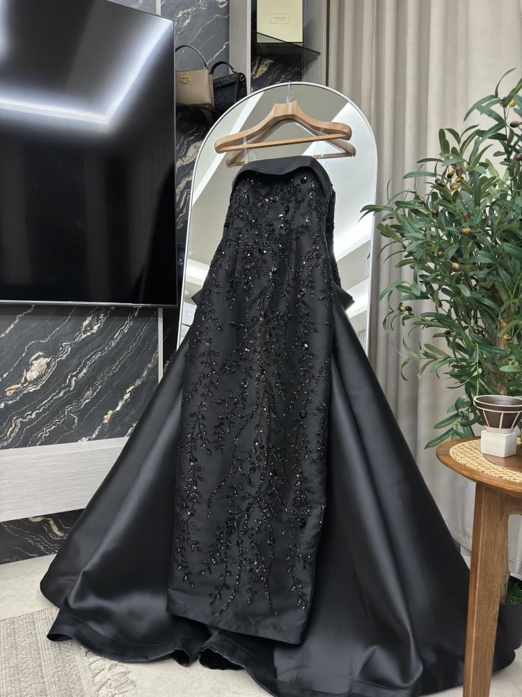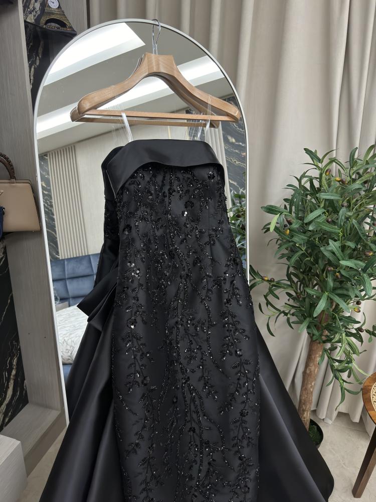 احصلي على إطلالة رائعة ومميزة في مناسبات الزواج والمناسبات الخاصة مع فستان سهرة ماسك بتصميم فيونكة وذيل طويل بلون الأسود الجميل. يأتي هذا الفستان بقصة مخصرة تبرز جمالك وتحدد خصرك بشكل رائع. مصنوع من قماش ميكادو عالي الجودة لضمان الراحة والأناقة. يتوفر بمقاسات متعددة لتناسب جميع الأشكال والأحجام. يتميز الفستان بلون أسود جميل يضفي لمسة أنوثية ورقيقة على الإطلالة.