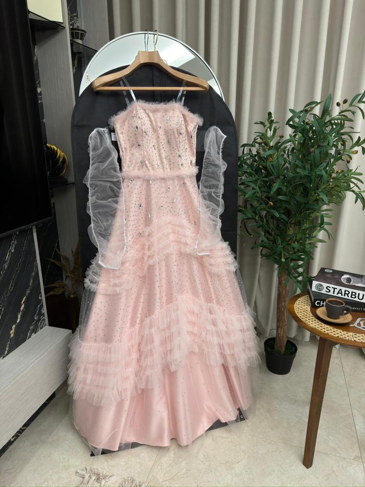 اطلبي الآن فستان سهره تل طبقات بأكمام منفصله