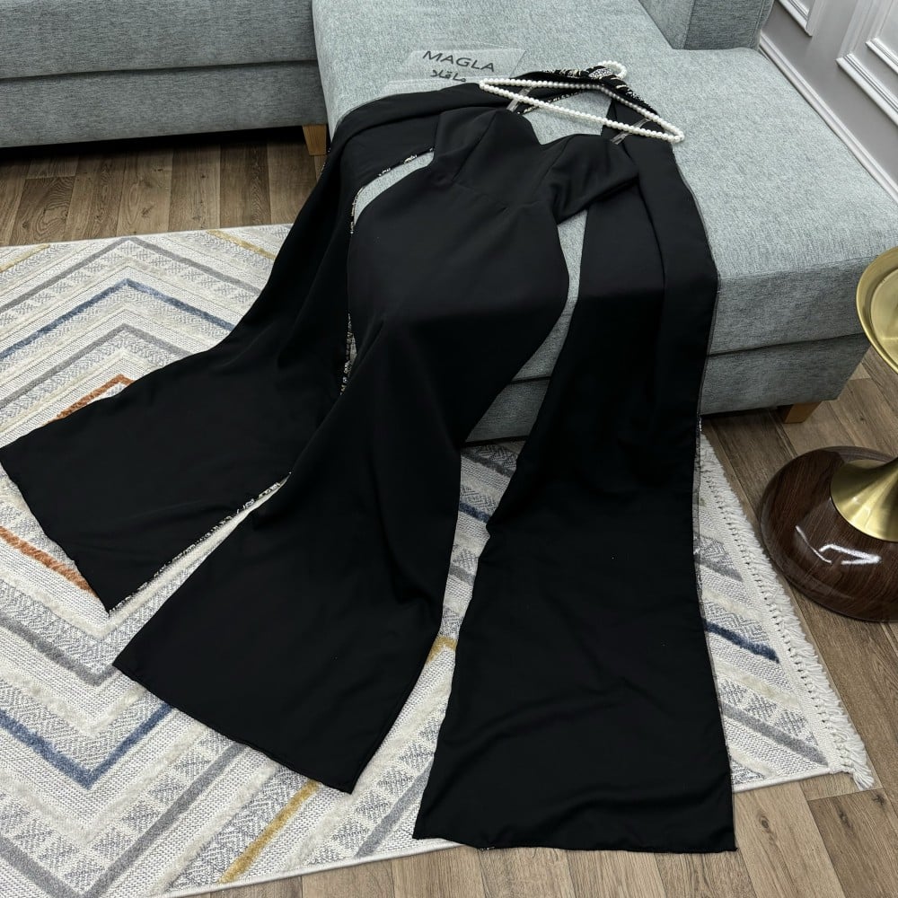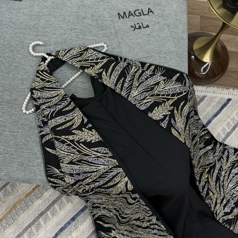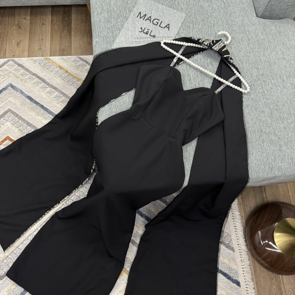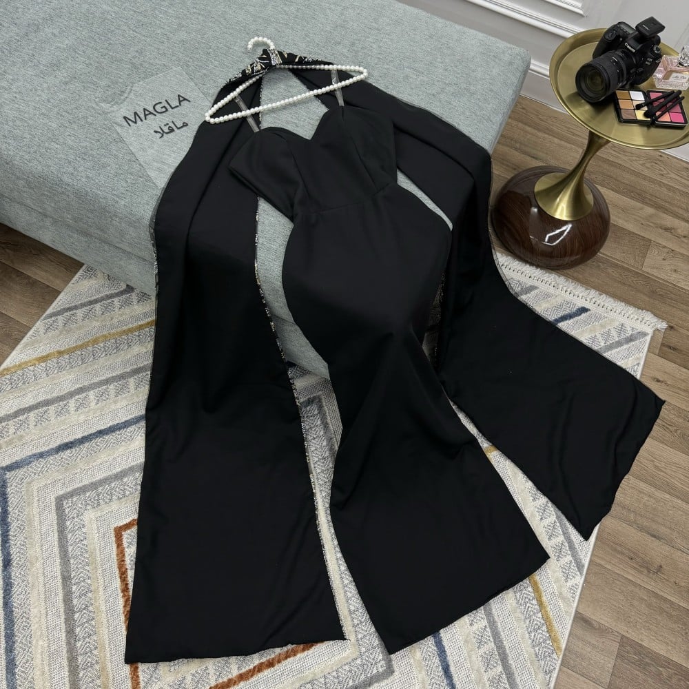 فستان سهره ماسك بشال مطرز صُمِّم بإتقان ليتميَّز بكماله وجماله ، فهو من الفساتين ذات القصة الرائجة ، ومصمَّم بفنية عالية ممزوجة بالحرفية المتقنة في التطريز البارع المروِّع على بشاله المذهل ، يأتي هذا الفستان بلون أسود ساحر ، و مقاسات متعددة لتناسب جميع الأوزان والأحجام ، صُنع من خامة لا تتمدد ناعمة مطرَّزة بشكل أنيق ومميز ، مناسب لأجواء الزواج والمناسبات والخطوبة .
