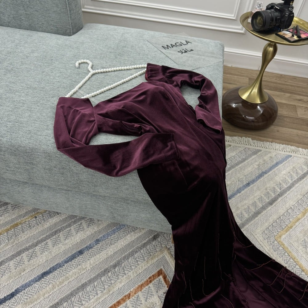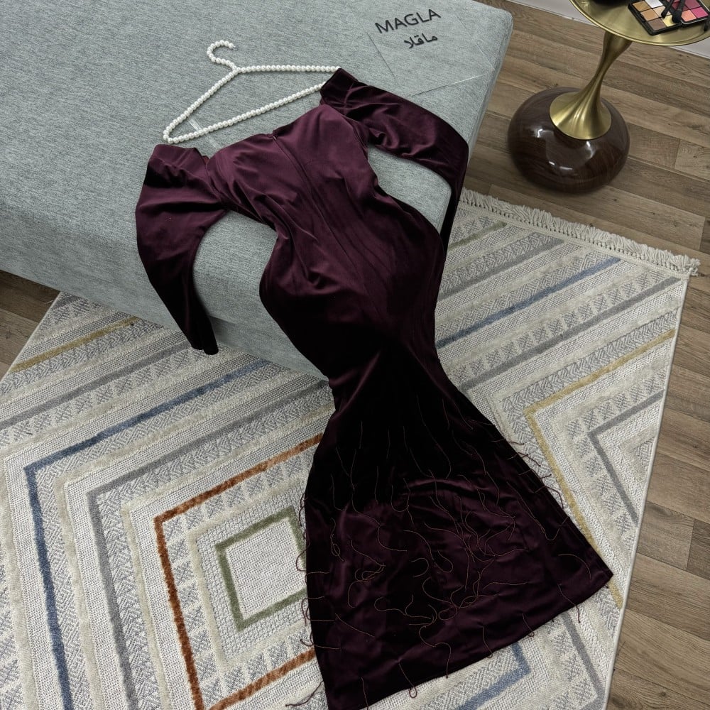 اطلبي الآن فستان سهره مخمل ناعم بلون موف لإطلالة راقية وأنيقة. يتميز هذا الفستان بقصة سكيني المثيرة التي تبرز جمال الجسم وتضفي لمسة أنوثة ساحرة. صُنع الفستان من قماش ميكادو واقف عالي الجودة، مما يضفي عليه لمعة وجاذبية فريدة. يأتي بلون موف جميل وملفت للنظر يضفي جمالًا على مظهرك.