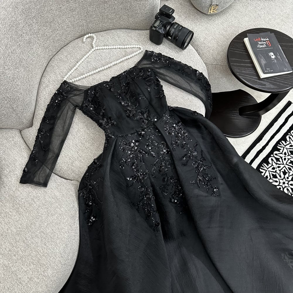 • تمتعي بالأناقة والتميز مع هذا الفستان الراقي الذي يتميز بتطريزه الفريد وقصته المتميزة.
