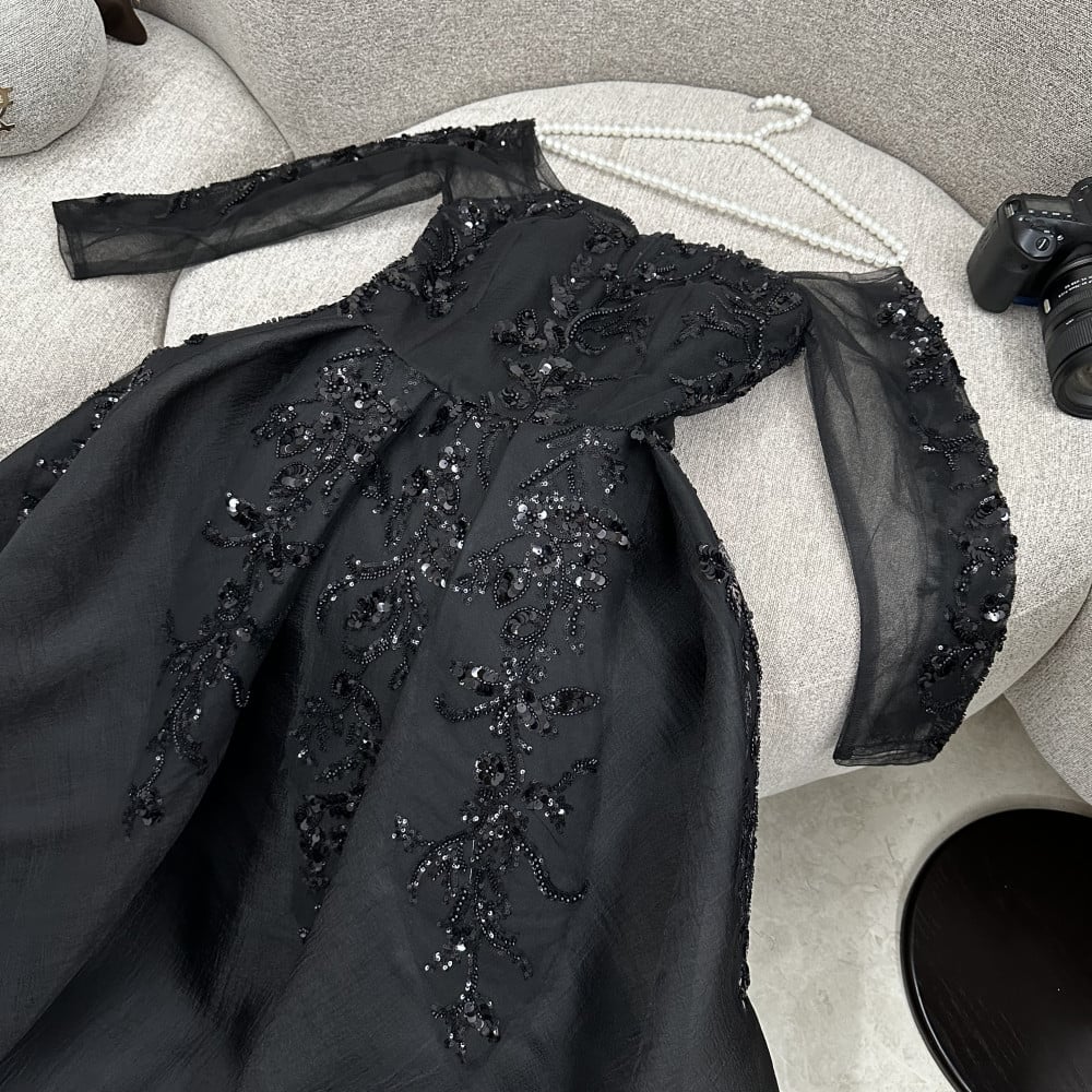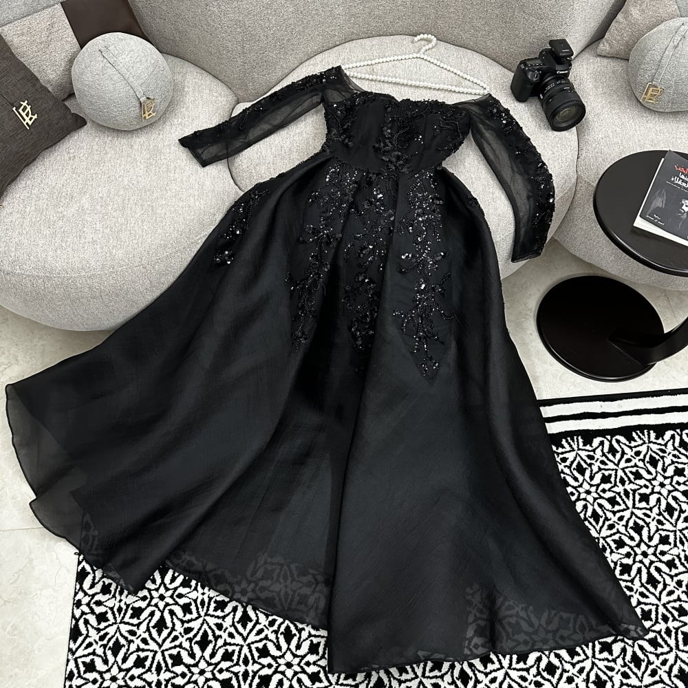 • فإن إضافات دائري مفتوح على قصة الصدر وكم كامل المطرز تعزز من جمال الفستان وأناقته.