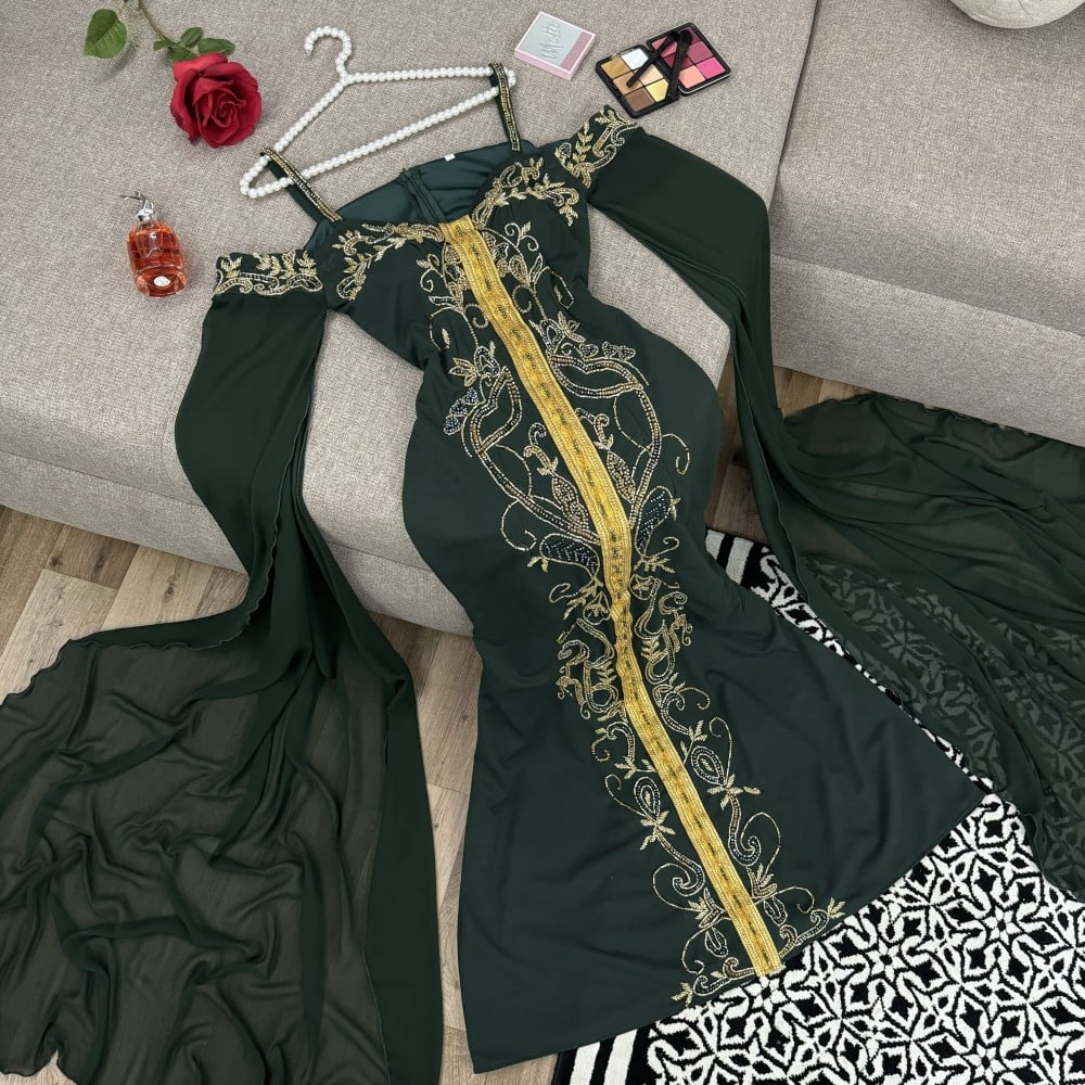 القماش : تفته مطرز والأكمام شيفون جورجيت