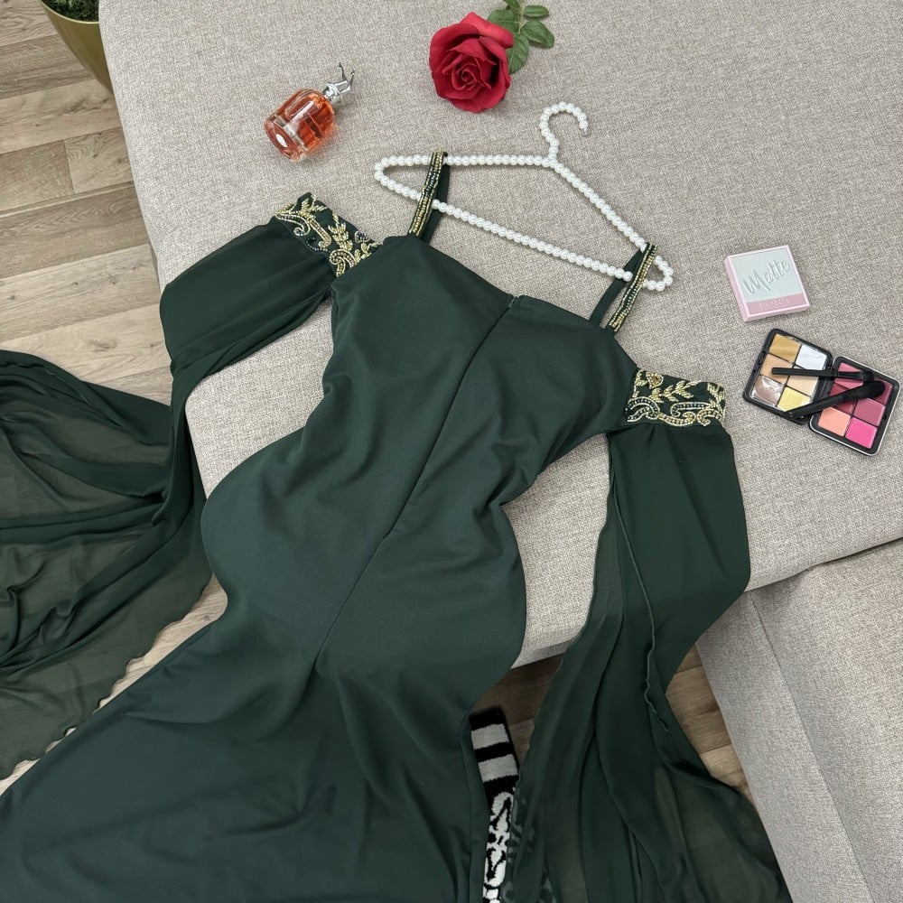 اطلبي الآن فستان سهره مطرز كامل بأكمام شيفون طويله