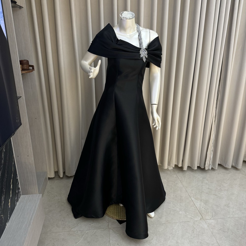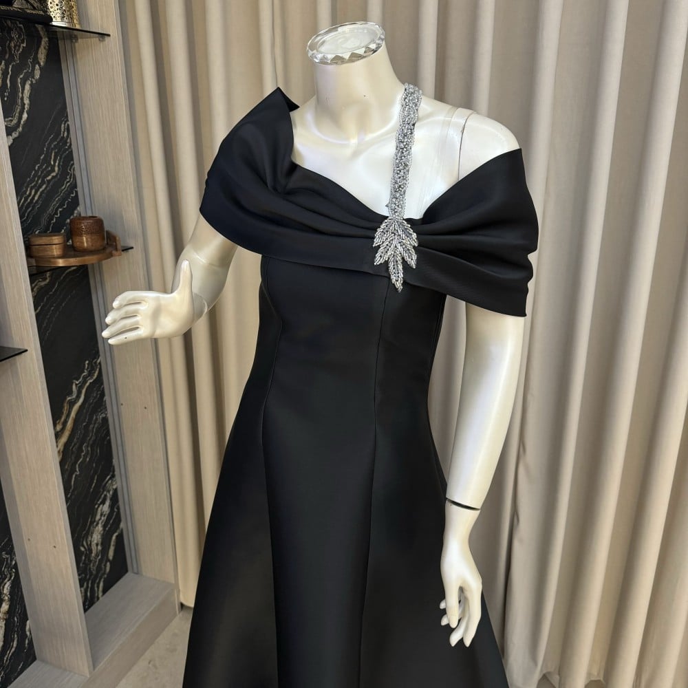 الفستان مصنوع من قماش الميكادو الواقف عالي الجودة، مما يمنحه مظهرًا فاخرًا وجودة عالية. يأتي بطول 160 سم لإبراز جمالك وأناقتك. يتميز بلونه الأسود الكلاسيكي الذي يناسب جميع الأذواق ويضفي لمسة من الأناقة والجاذبية.