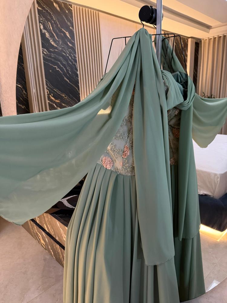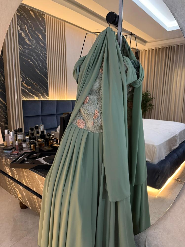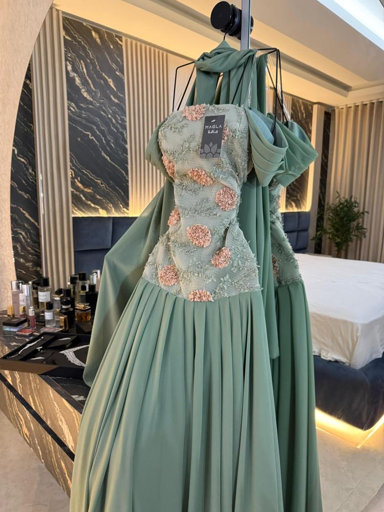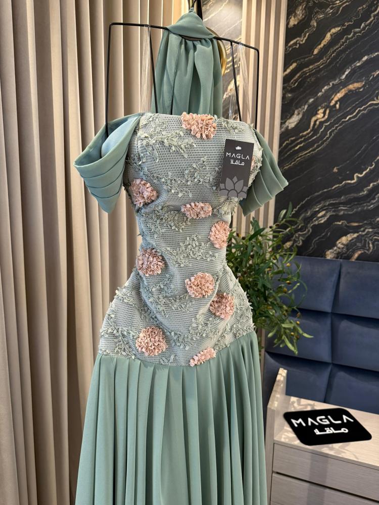 فستان ساحر من الشيفون الكلوش بكسرات انسيابية على نقشات ورود ناعمة، ينساب بجمال بلونه التيفاني الهادئ ليمنحك إطلالة حالمة بطول ١٥٧ سم. تصميم أنثوي يخطف الأنظار بسعر ٣٨٥ ريال فقط