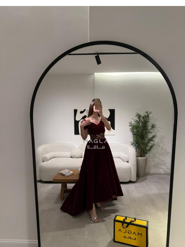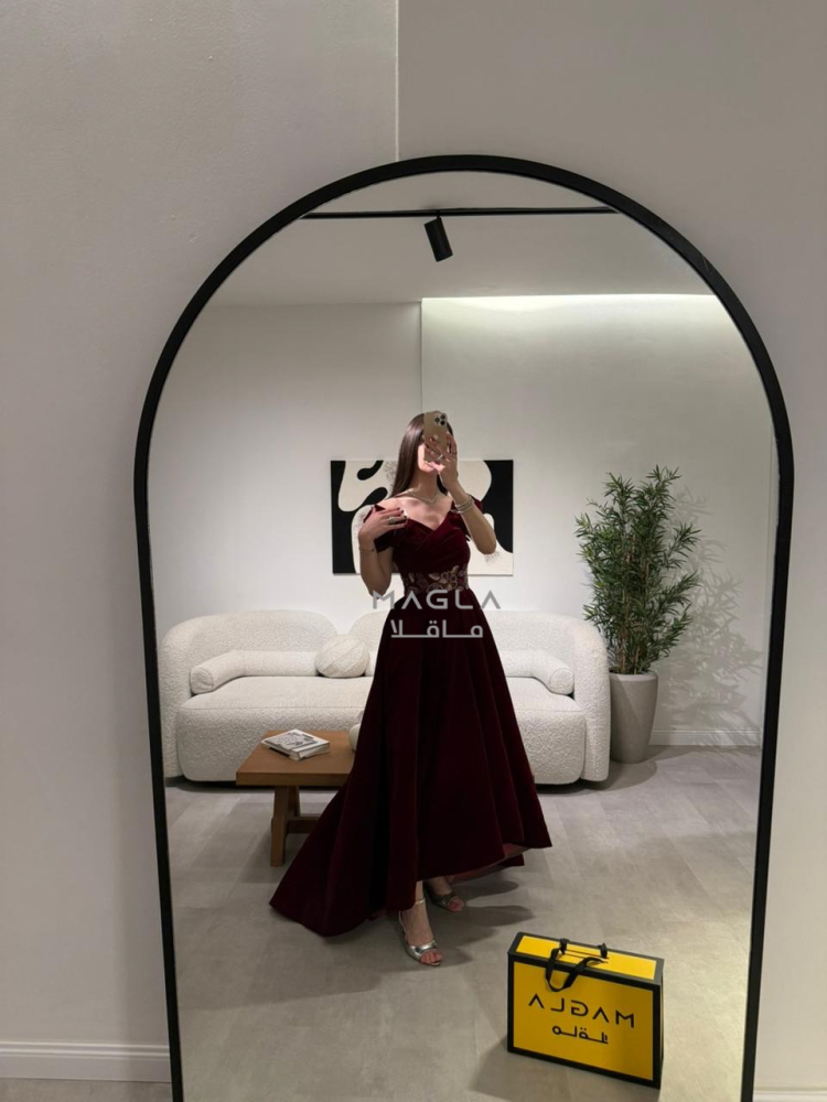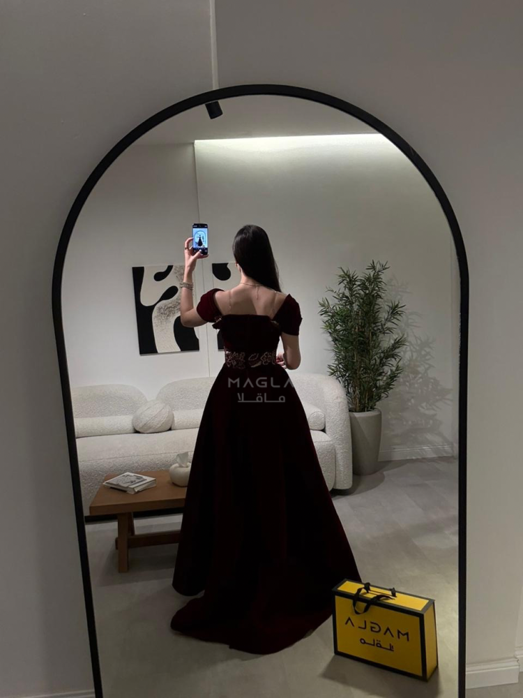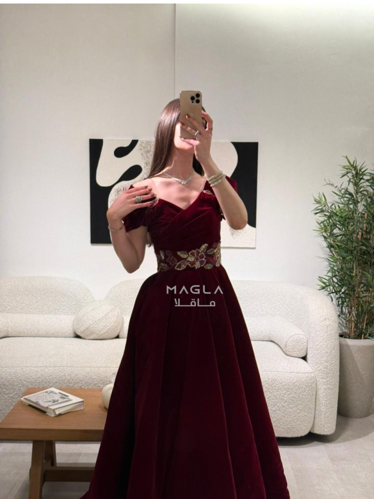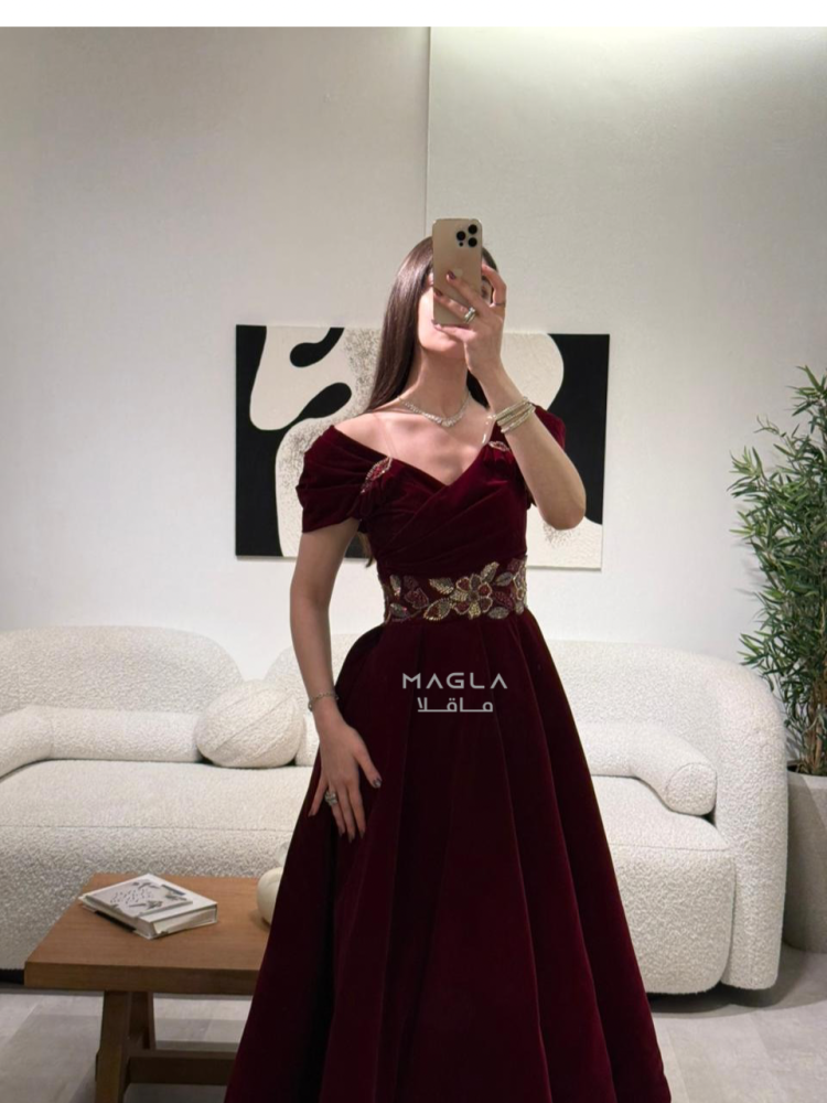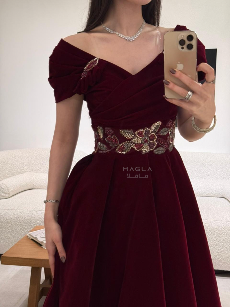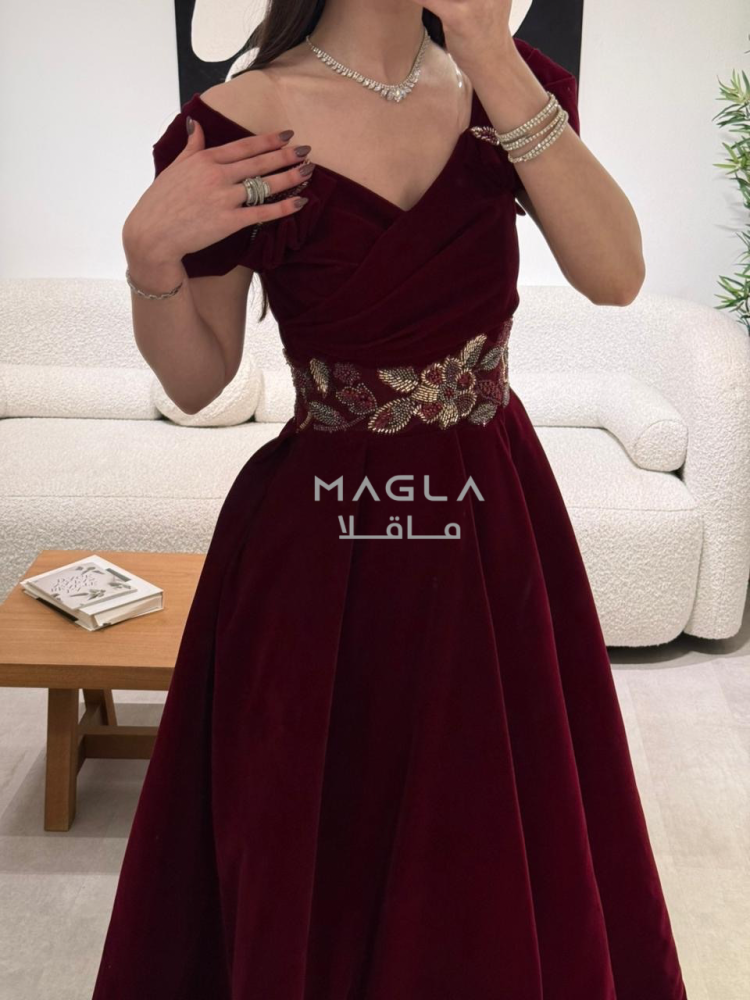 فخامة دافئة بتصميم شتوي أنيق من جوخ فاخر، يزدان بتطريز خرز شك راقي على الخصر لإبراز جمال القوام.
