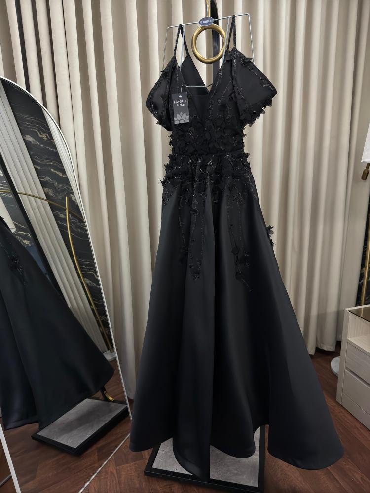 فستان سهرة كلوش خامة ميكادو مطرز هو قطعة فاخرة مثالية لإطلالات السهرة والمناسبات الخاصة. يتميز هذا الفستان بتصميمه الأنيق والمريح في الوقت نفسه. القصة الكلوش تعطي الفستان مظهرًا مميزًا وأنيقًا يناسب مختلف أشكال الجسم.