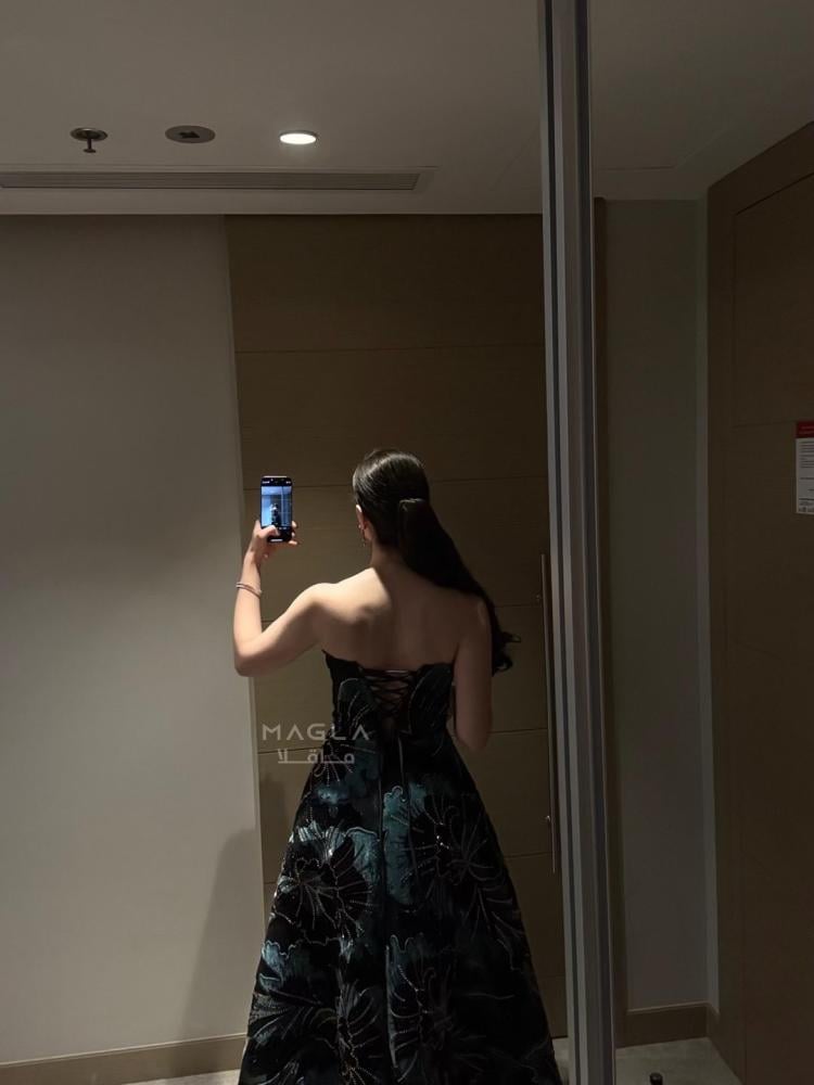 يأتي بقصة دبل كلوش تنسدل بانسيابية أنثوية، مع توب كورسيه بتصميم فراشه يمنحك إطلالة حالمة تجمع بين الجرأة والأناقة.