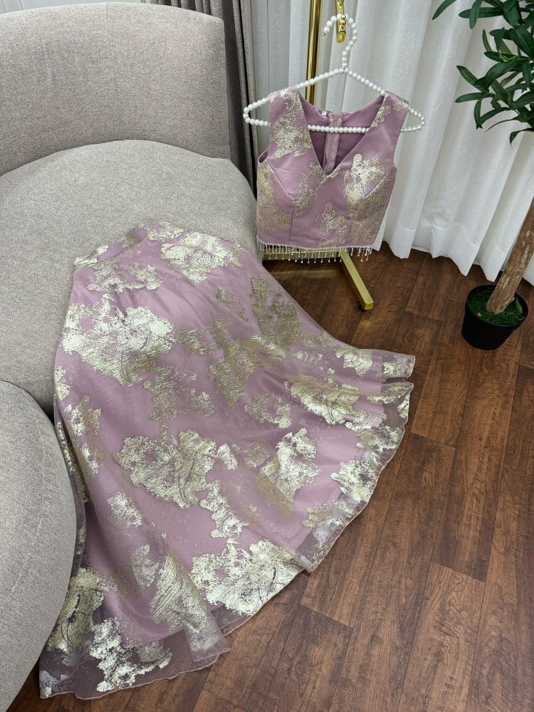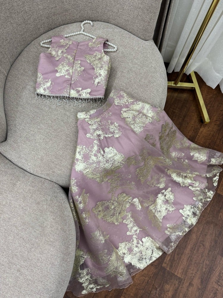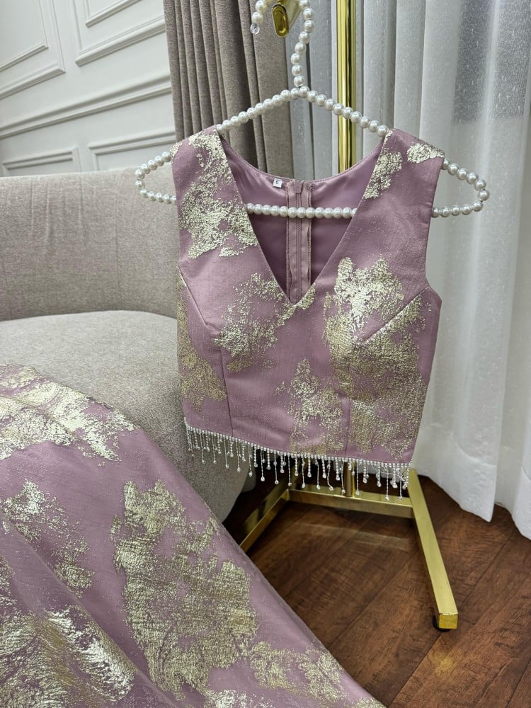 استعدي للربيع بأناقة وجاذبية مع فستان القطعتين بتصميم ربيعي. يأتي هذا الفستان بنوعية القصة الطقم الأنيقة والمميزة، مما يجعله مثالياً للمناسبات الخاصة. يأتي الفستان بلون وردي مطرز جميل، مما يضفي عليه لمسة من الأناقة والجمال.