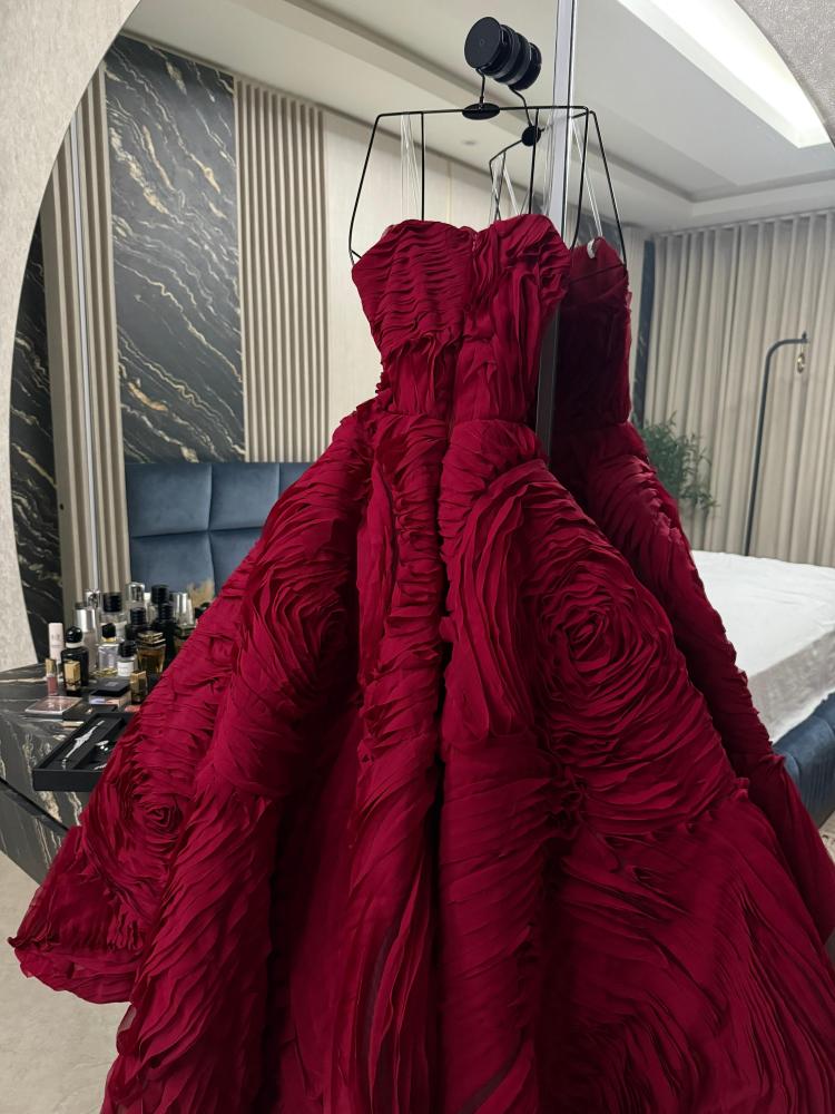 فستان أنيق بطابع ملكي، مصنوع من شيفون كريشه فاخر بتصميم ورود كبيرة تنبض أنوثة، ويأتي مع جيبون تركي يمنح اتساعًا راقيًا.