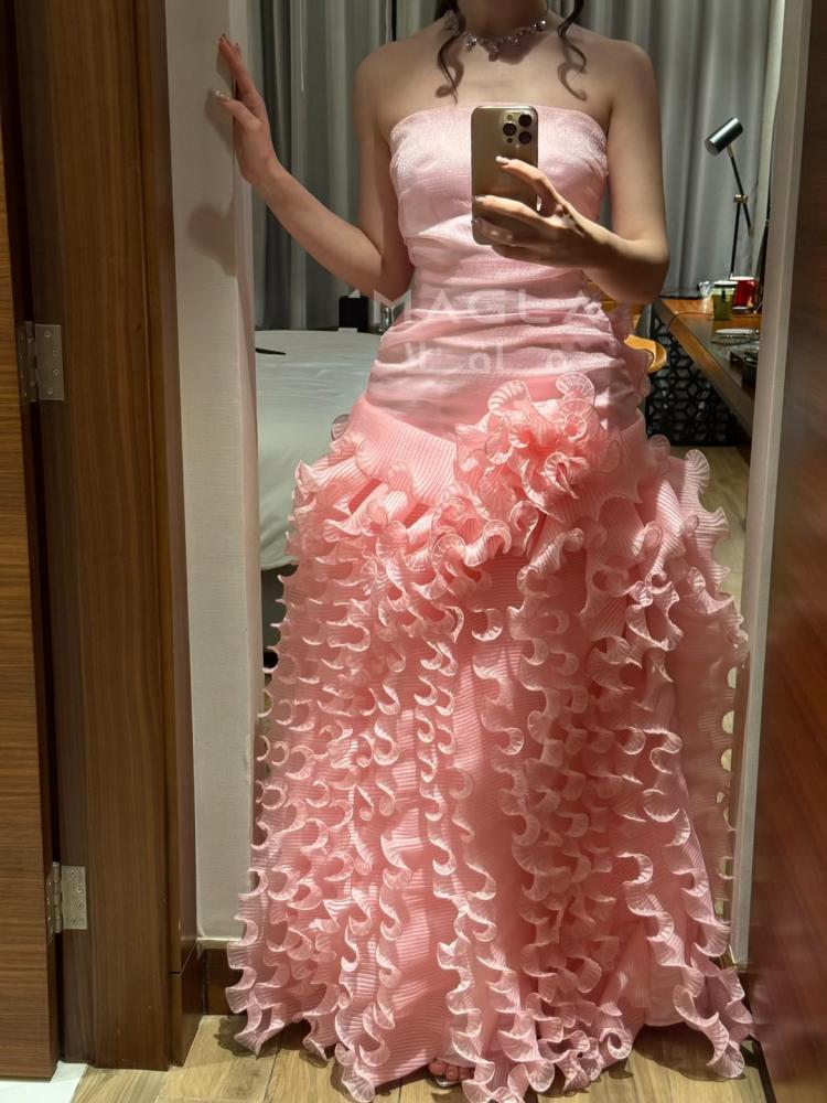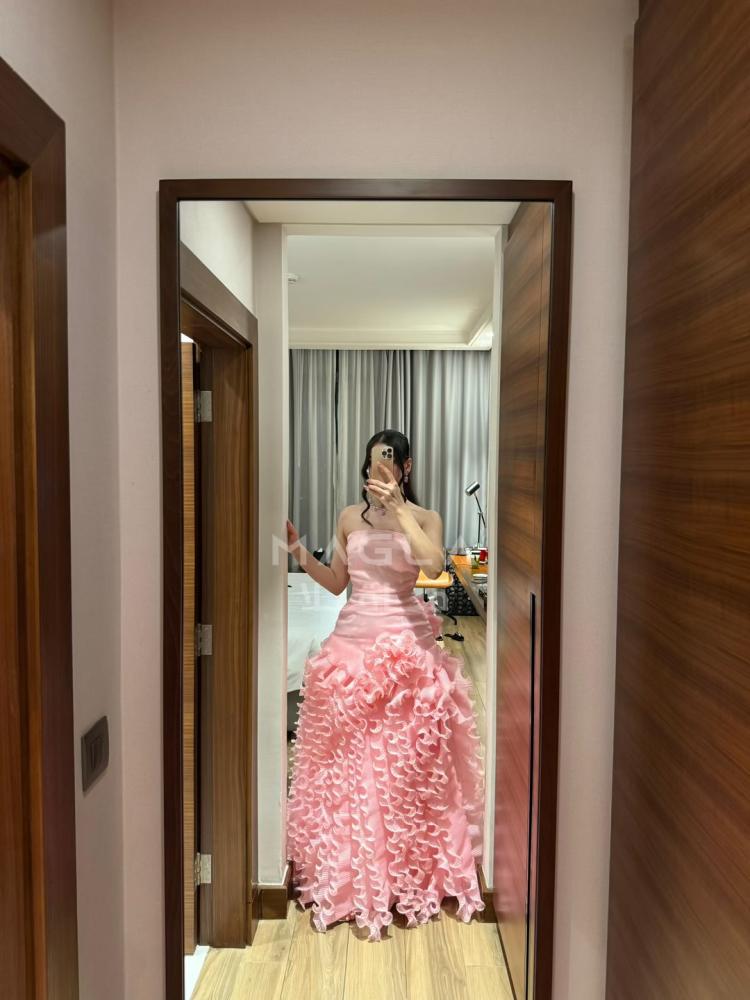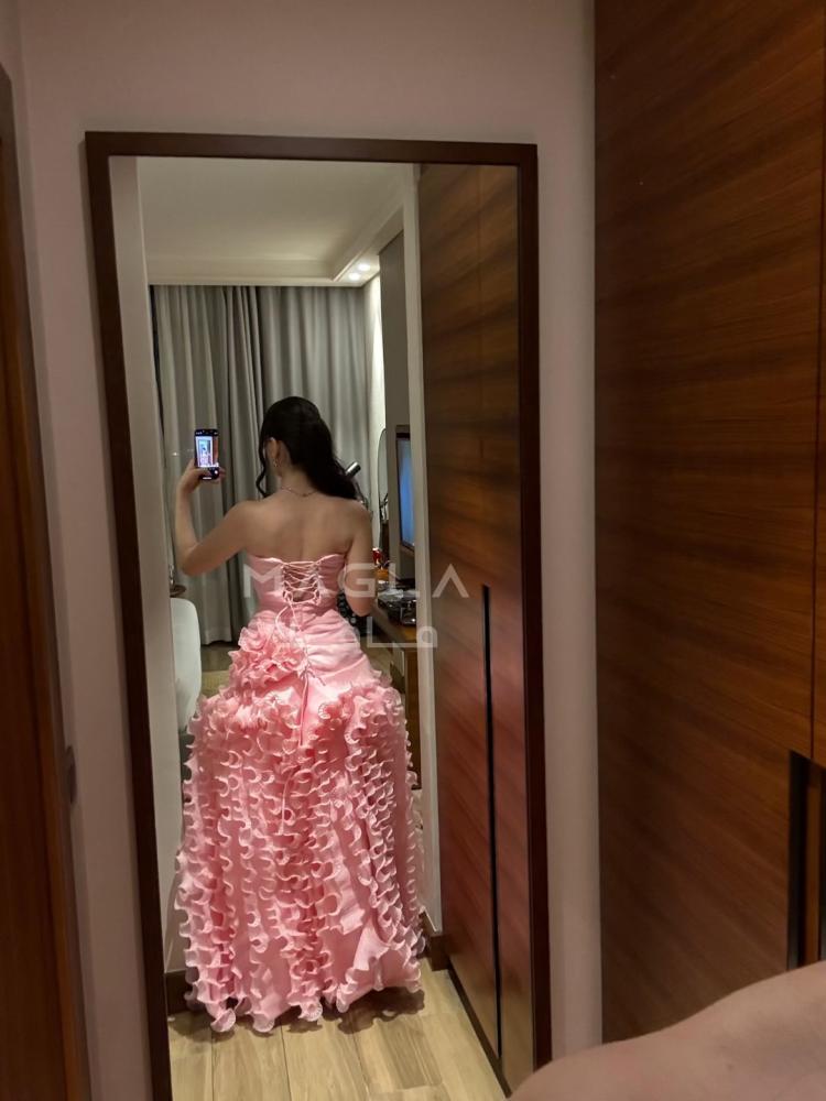 فستان لوديانا بتصميم ساحر من خامة جازار فاخر، ينسدل بقصة كلوش طبقات طولية تمنح حجماً ملكياً وأناقة ملفتة. يأتي باللون البيبي بينك الناعم لإطلالة رقيقة وغاية في الجمال.