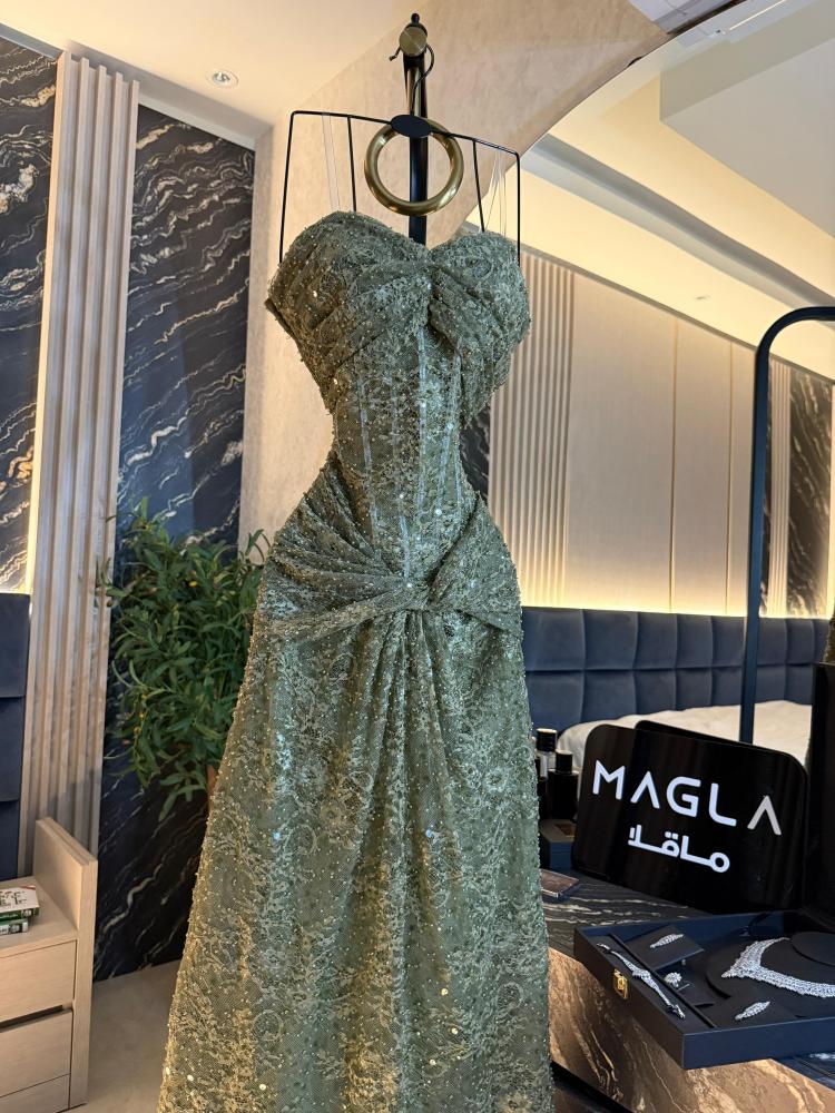 دانتيل مطرز بالخرز والترتر يلمع كسرّ خافت،
