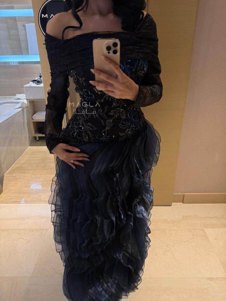 يأتي بتصميم أوف شولدر بأكمام طويلة يبرز جمال الأكتاف ويضفي إطلالة فخمة.