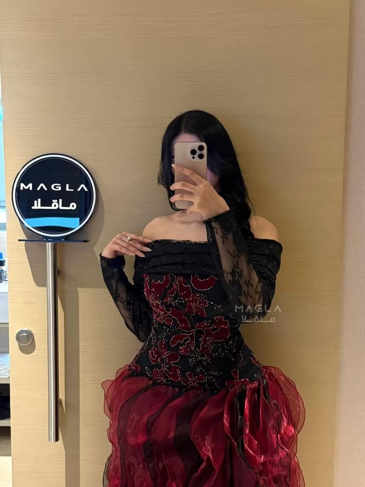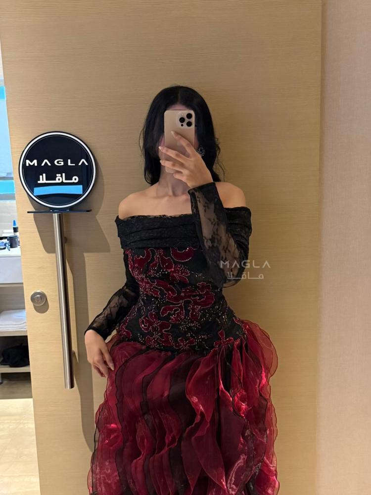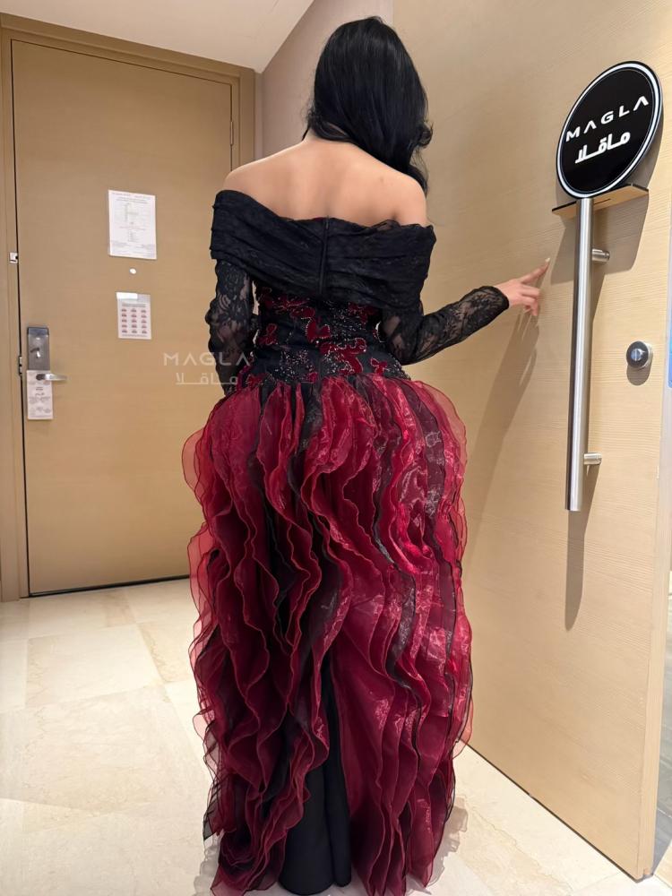 تصميمه أوف شولدر بأكمام طويلة يبرز الجاذبية والأنوثة بأسلوب راقٍ ومترف.