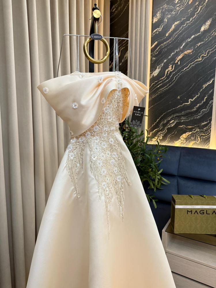 الفستان مارلينا هو فستان أنيق مصنوع من قماش ميكادو الفاخر، مزين بتطريز من الخرز والشك الذي يضيف له لمسة من الفخامة. يأتي بلون بيج جذاب، وطوله 160 سم، مما يجعله مناسبًا للمناسبات الخاصة. سعر الفستان هو 489 ريال.