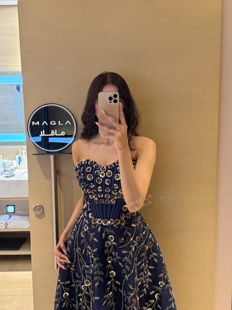 يأتي باللون الكحلي الناعم بطول ١٦٠ سم ليجمع بين الأناقة والفخامة في كل تفصيلة.