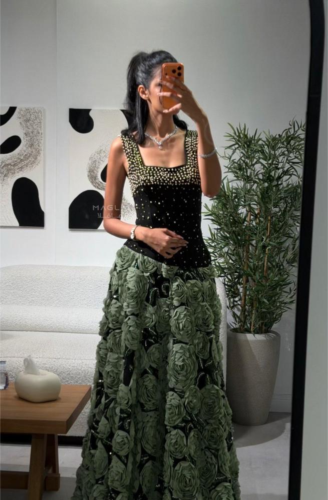 بسعر ٦٤٥ ريال — خيار مثالي لكل من تبحث عن التميز في ليلةٍ لا تُنسى. 🌿🖤