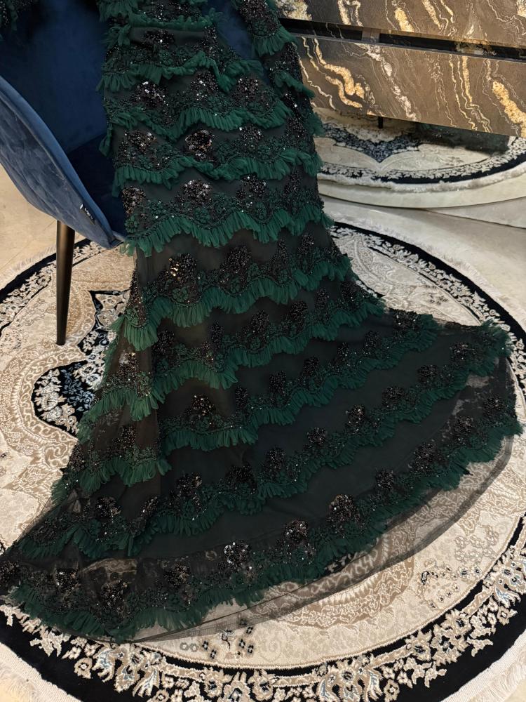 دانتيل إسباني فاخر مطرز بالخرز والشك كأنّه وشاح ضوء،