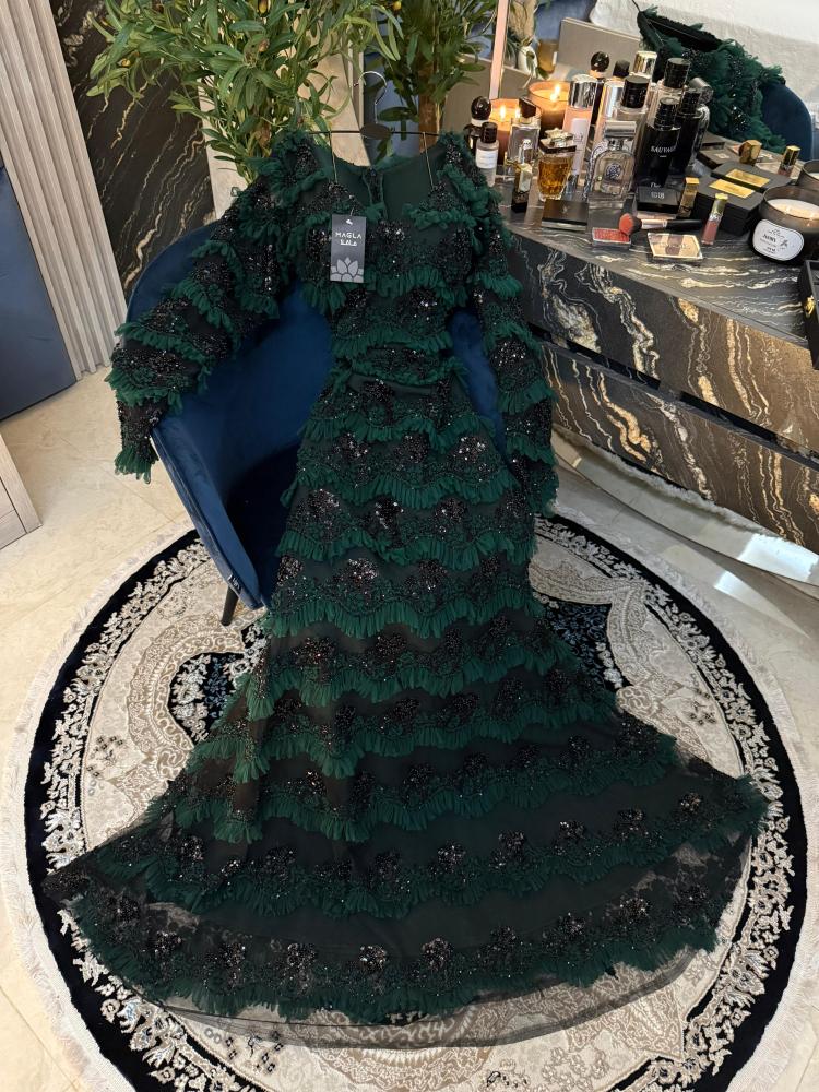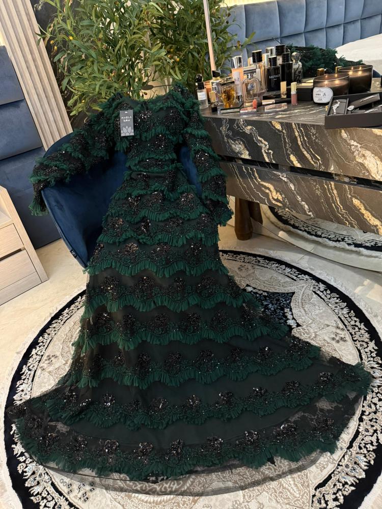 القماش :دانتيل إسباني بتطريز خرز شك مع هديل تل