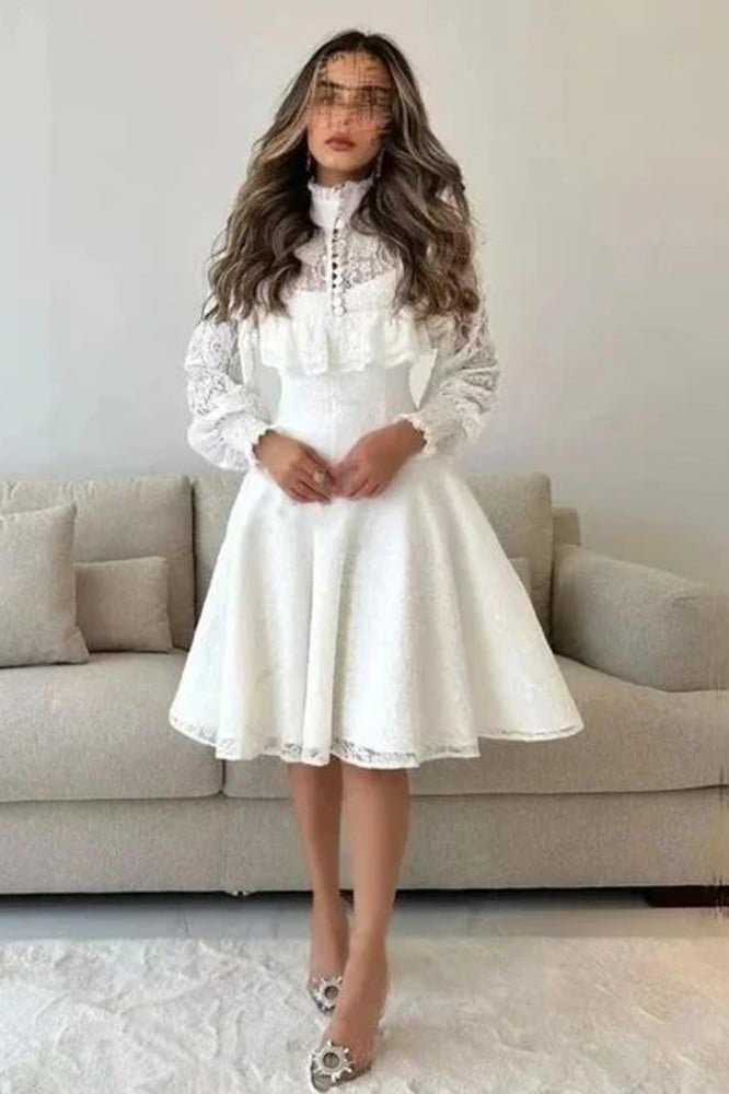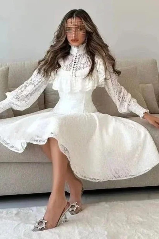 استعدي للحفلات والمناسبات الخاصة مع فستان ميدي أكمام طويلة كلوش مخصر باللون الأبيض الرائع. يتميز هذا الفستان بتصميمه الأنيق والمثير الذي يلفت الأنظار. يأتي بقصة كلوش مخصرة تبرز جمال وأنوثة الجسم. القماش المستخدم هو الدانتيل الكوري عالي الجودة والذي يضفي لمسة من الرقة والأناقة على الفستان. يأتي بأكمام طويلة تضفي لمسة من الجمال والأناقة، ويصل طول الفستان إلى 135 سم، مما يجعله مناسبًا للحفلات والمناسبات المختلفة. احصلي على هذا الفستان الرائع وتألقي بإطلالة ساحرة ومميزة.