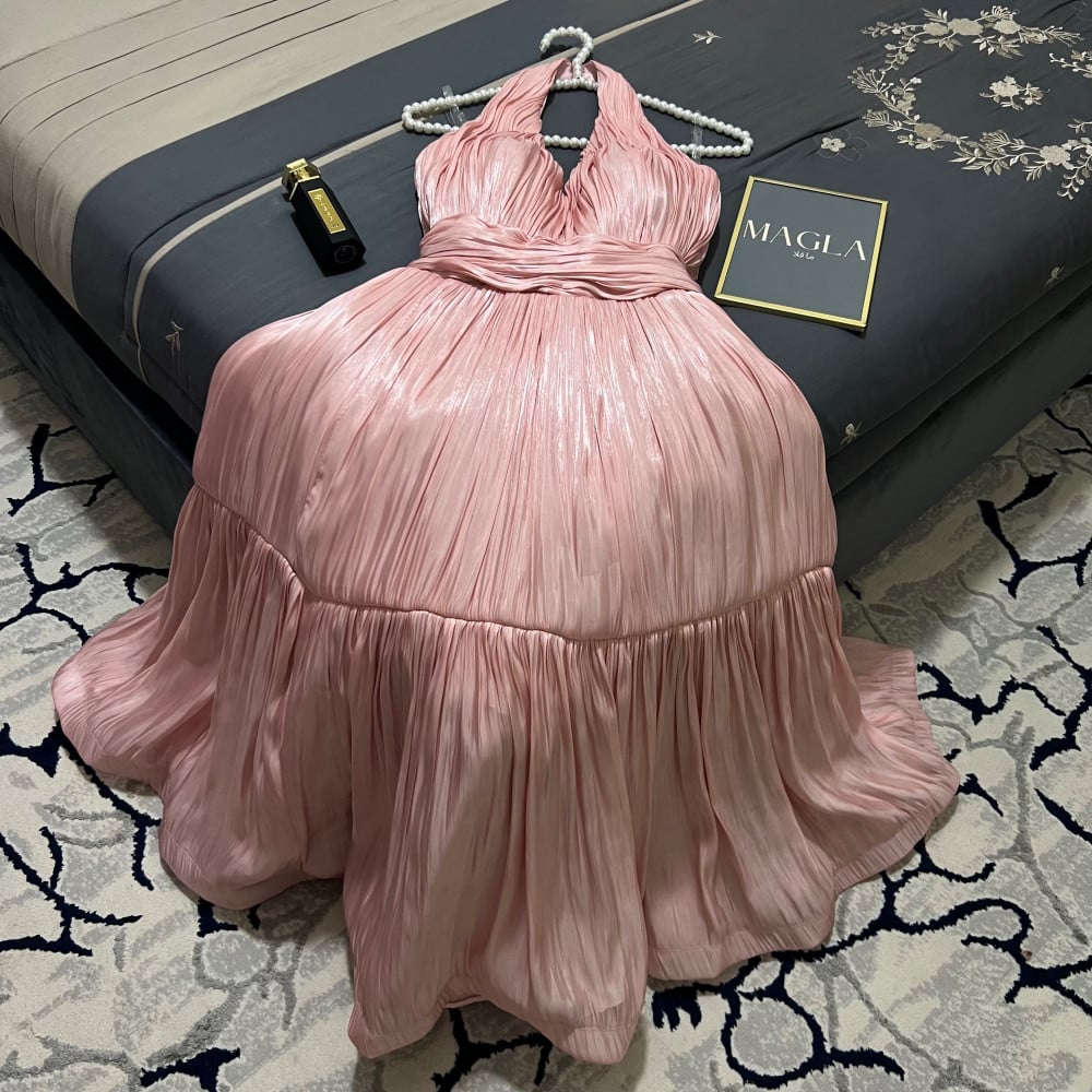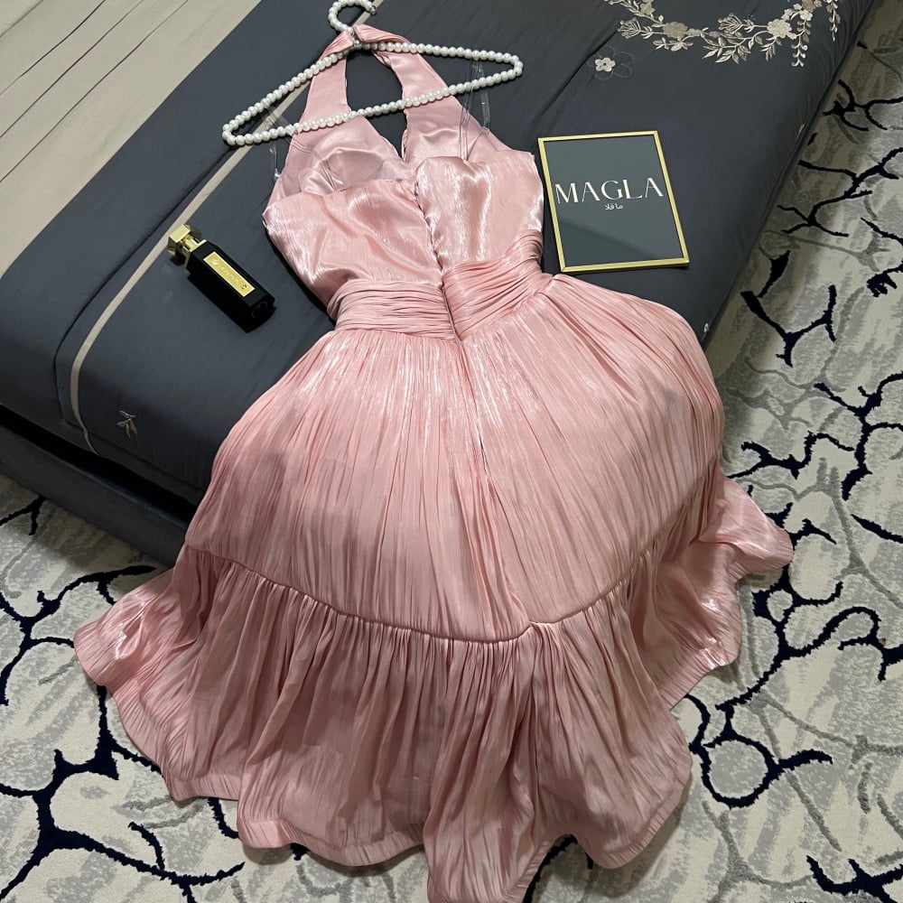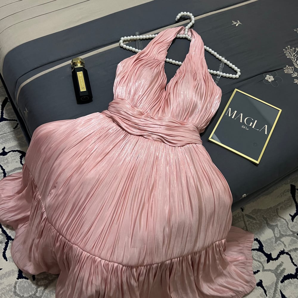 القماش الجازار الناعم والفخم يضيف لمسةً من الرقي ، مما يجعله مثاليًا للمناسبات الخاصة مثل الأعراس والحفلات ، تصميم قصة الصدر على شكل رقم سبعة متصل بالرقبة يضفي لمسةً فريدة وجاذبية ، وعدم وجود أكمام يسمح بحرية الحركة ويبرز جمال ذراعيك ، متوفر بمقاسات متعددة ، يضمن فستان جازار ميدي مقاسًا مثاليًا لكل شكل جسم .