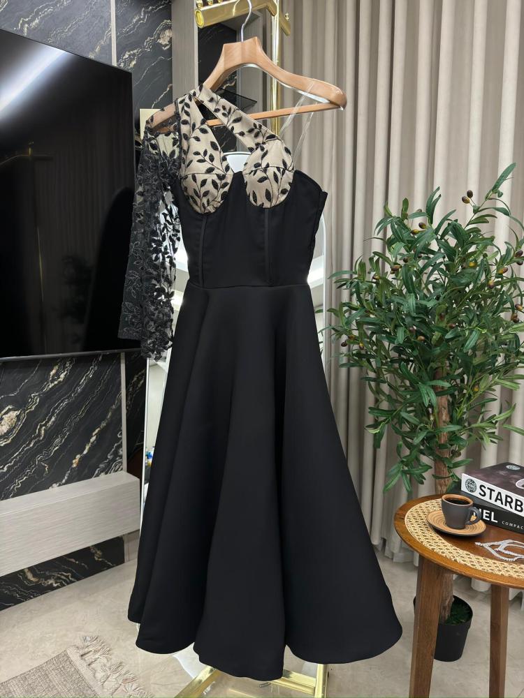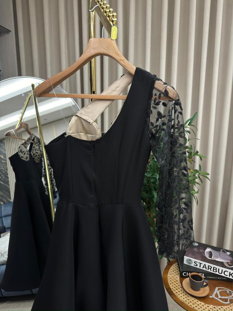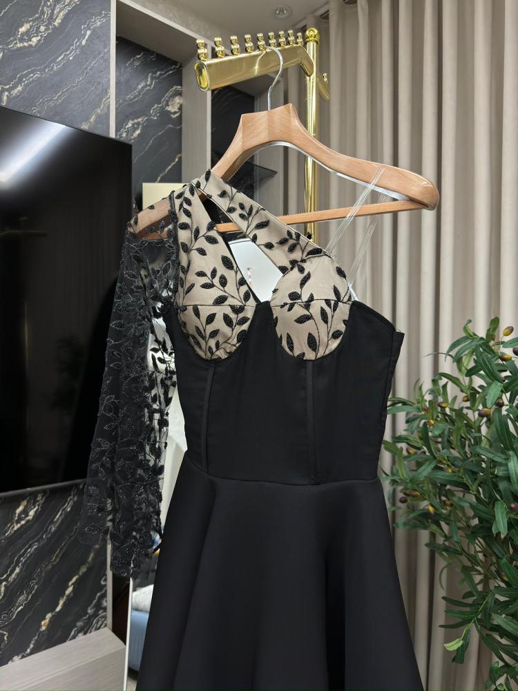 يأتي الفستان بلون أسود جذاب ومثير، مما يجعلك محط أنظار الجميع. تم تصميم الفستان جريئه ، مما يعزز رونقه ويضفي لمسة من الأناقة والجمال. بالإضافة إلى ذلك، يأتي الفستان بكم واحد مطرز لإضفاء لمسة من الأناقة والأنوثة.