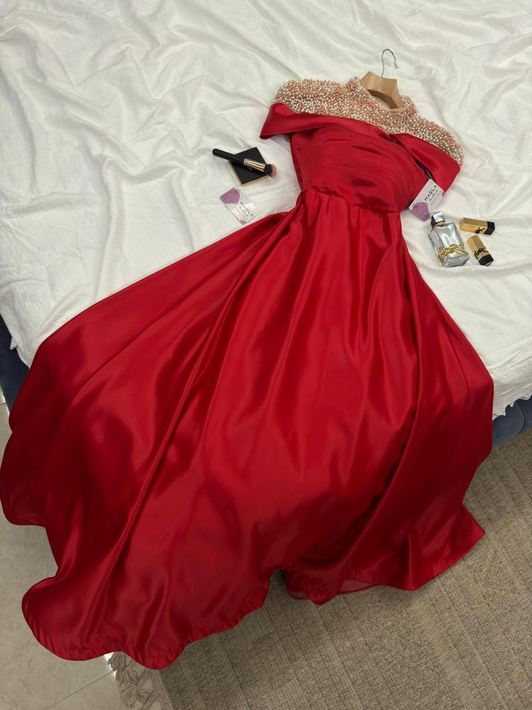 يتوفر بمقاسات متعددة لتناسب مختلف الأجسام ويضمن المقاس المثالي لك. يأتي بلون أحمر رائع ومسترخي، مما يجعله مناسبًا للزواج والخطوبة والمناسبات الرسمية. يتميز بقصة كلوش التي تعطي شكلًا رائعًا وأنيقًا للفستان.