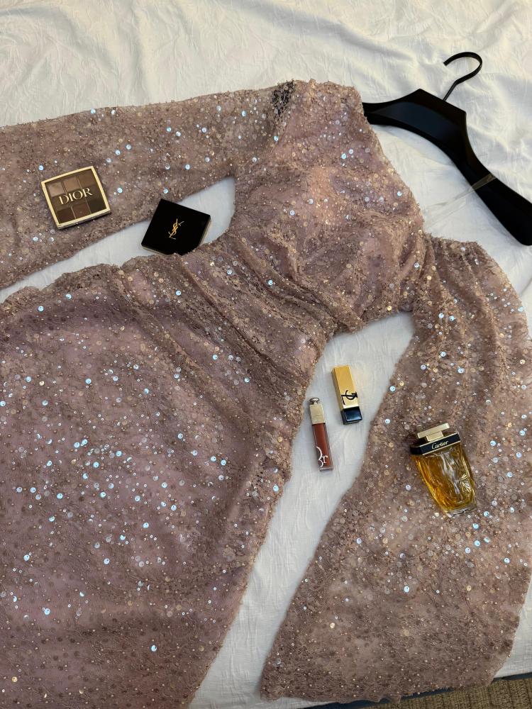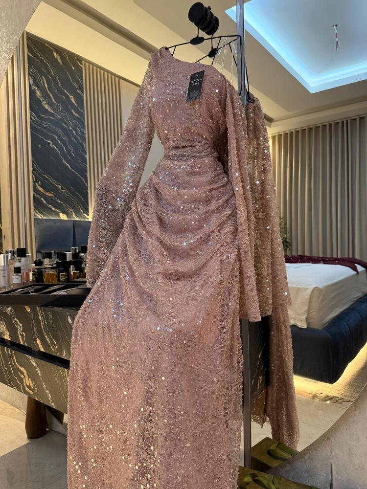 نوع القماش : دانتيل بتطريز ترتر مع لولو