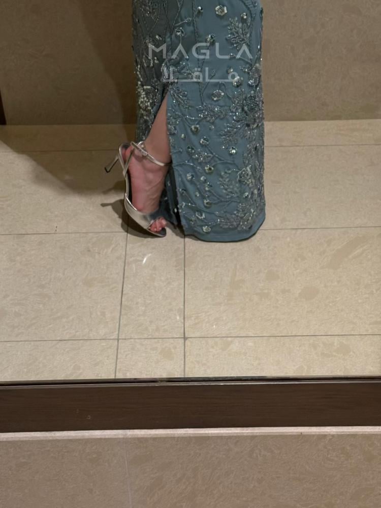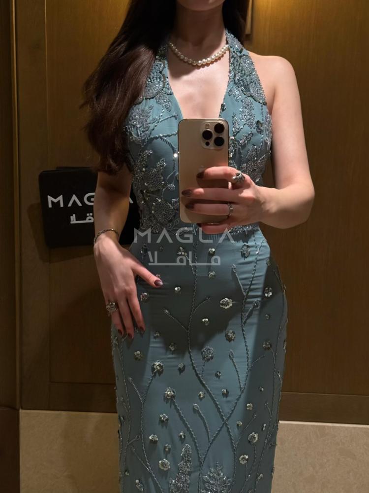 نوع القماش : شيفون اسباني بتطريز خرز شك مع ترتر وبلور راقي