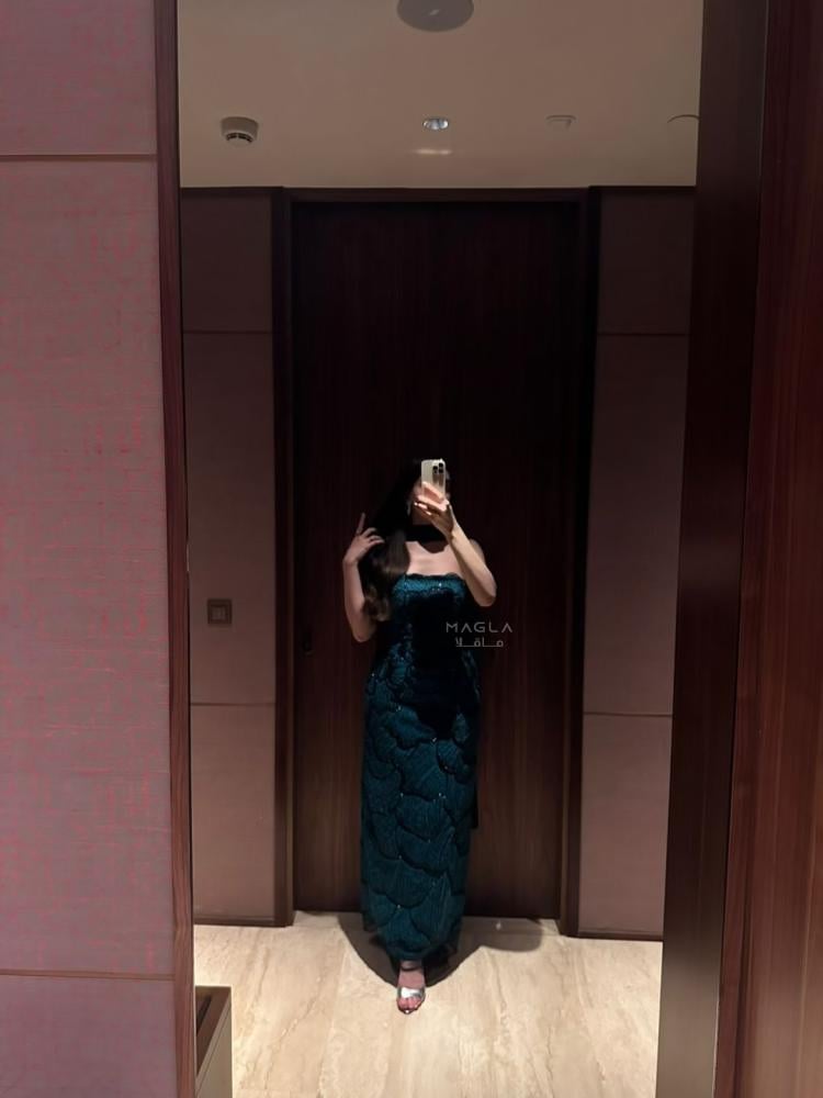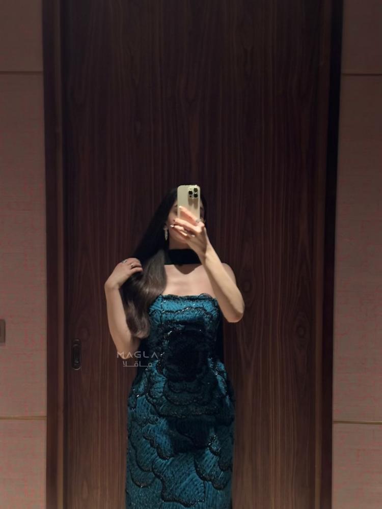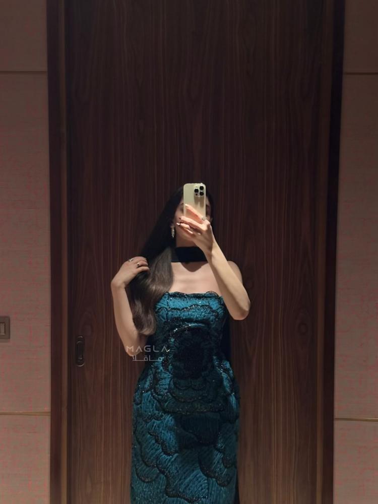اللون فيروزي عميق يعكس فخامة وجاذبية السهرات الراقية.