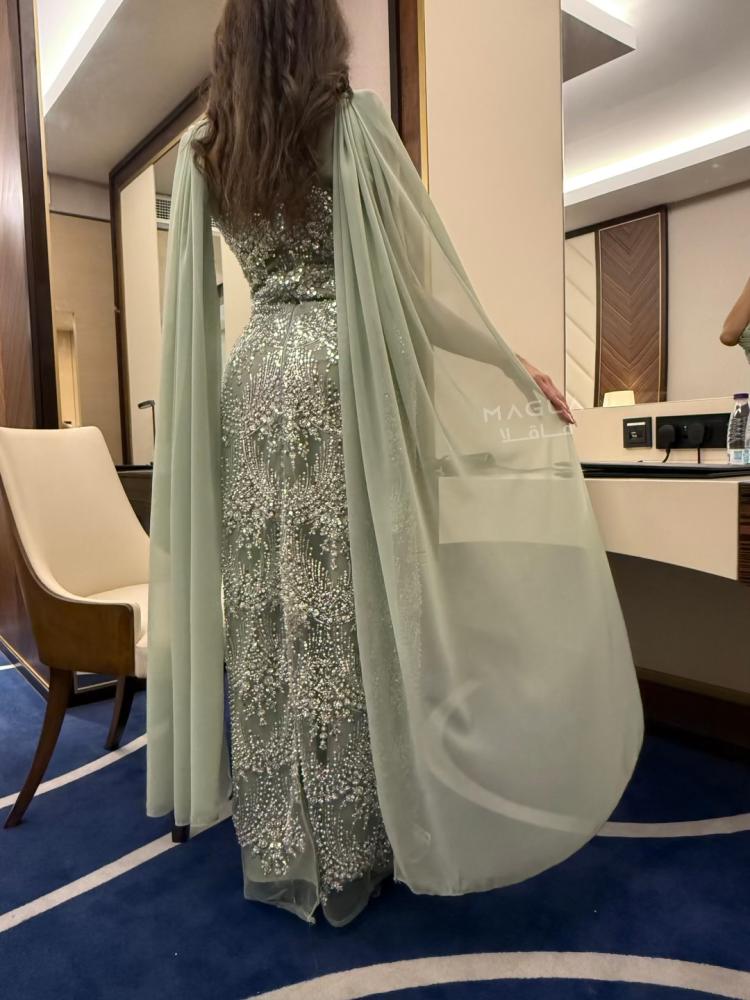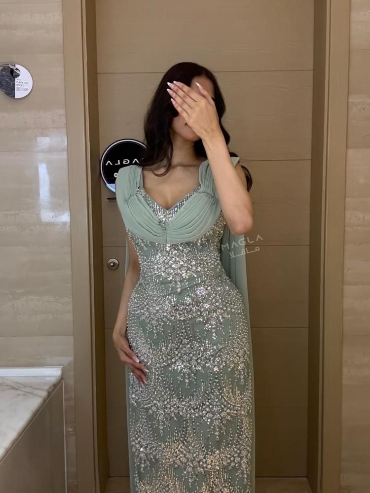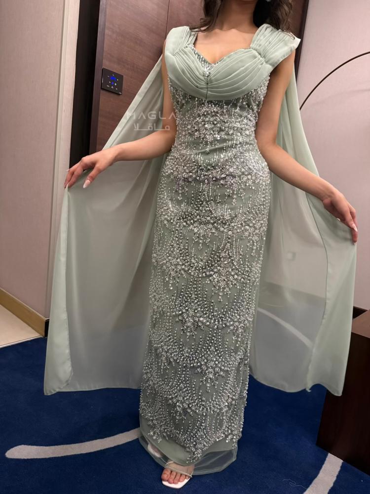 يأتي باللون التيفاني الجذاب بطول ١٥٧ سم، مناسب للسهرات المميزة