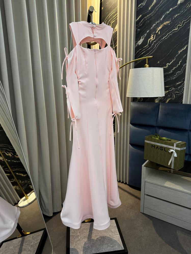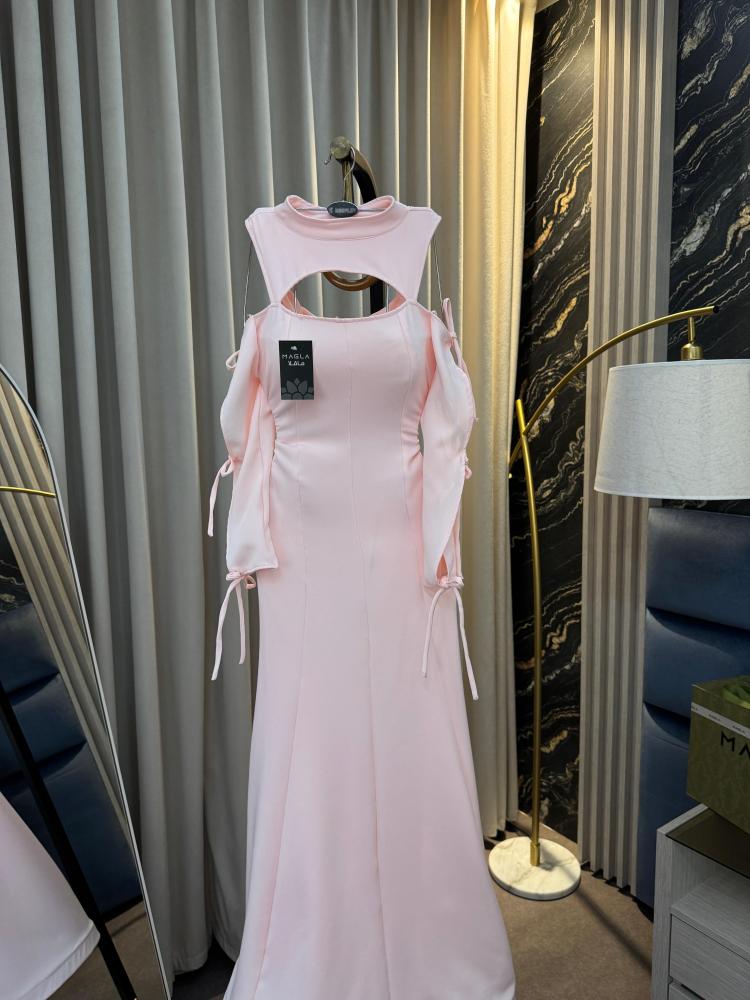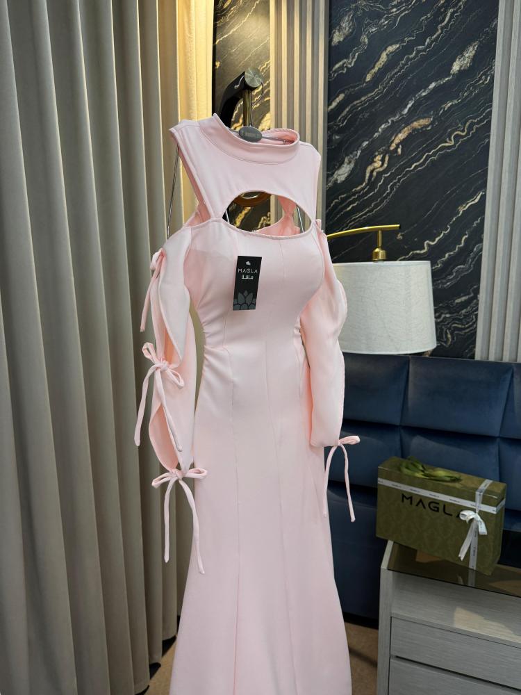 "فستان غزالة – تألقي بجاذبية اللون بيبي بينك!" ✨