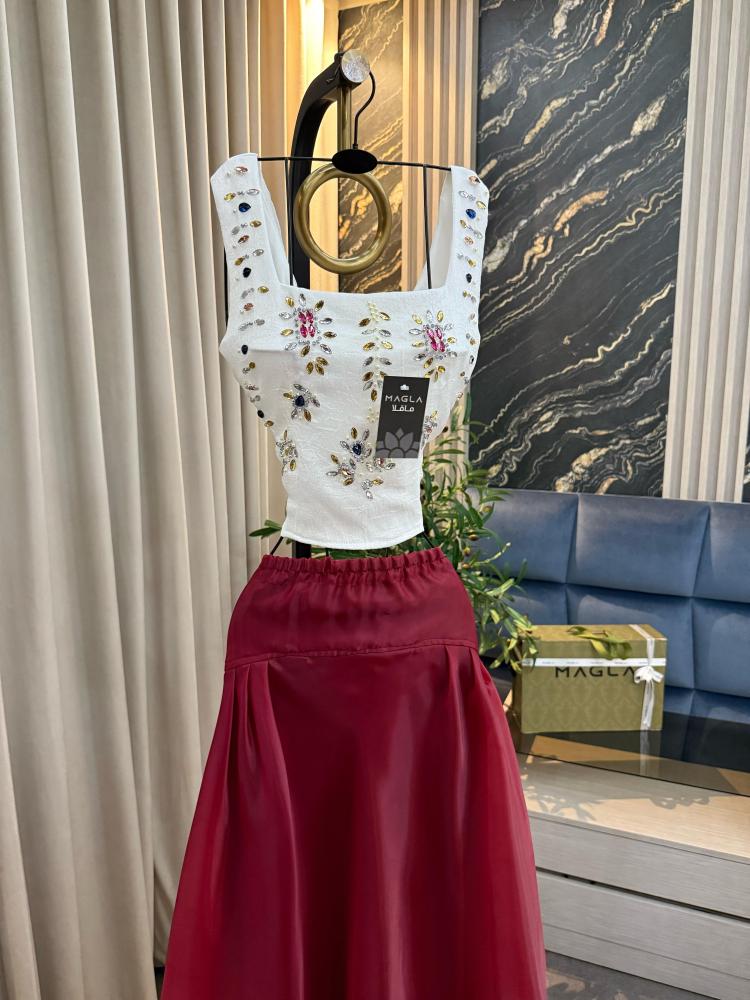 تألقي بأناقة راقية مع تيور "كارتيا" الفاخر، المصمم بأسلوب يجمع بين الفخامة والأنوثة. يأتي هذا التيور بقطعتين، مصنوع من أجود أنواع قماش الجازار الحريري، مع تطريز شك أنيق يضفي لمسة فريدة من الفخامة. يتميز بتدرجات اللون البرغندي على الأبيض، ليمنحك إطلالة راقية ومتميزة في مختلف المناسبات. احصلي عليه الآن بسعر ٣٥٥ ريال فقط!