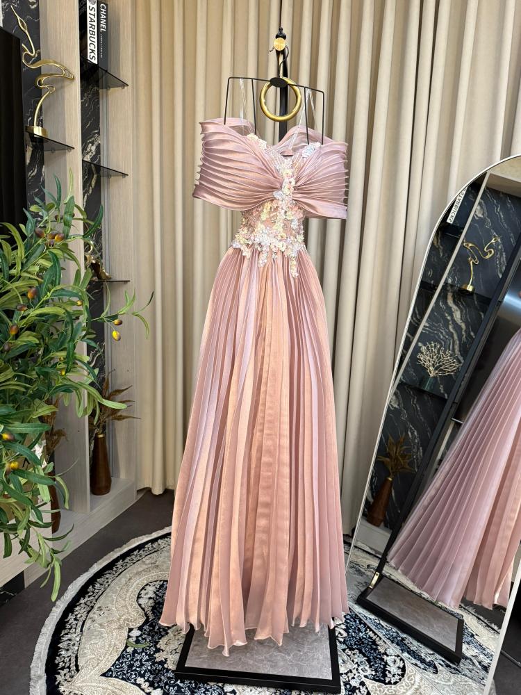 اختيار اللون اللحمي يعكس الذوق الراقي، بينما يضفي قماش الأورجنزا الحريري طابعًا ملوكيًا يخطف الأنفاس.